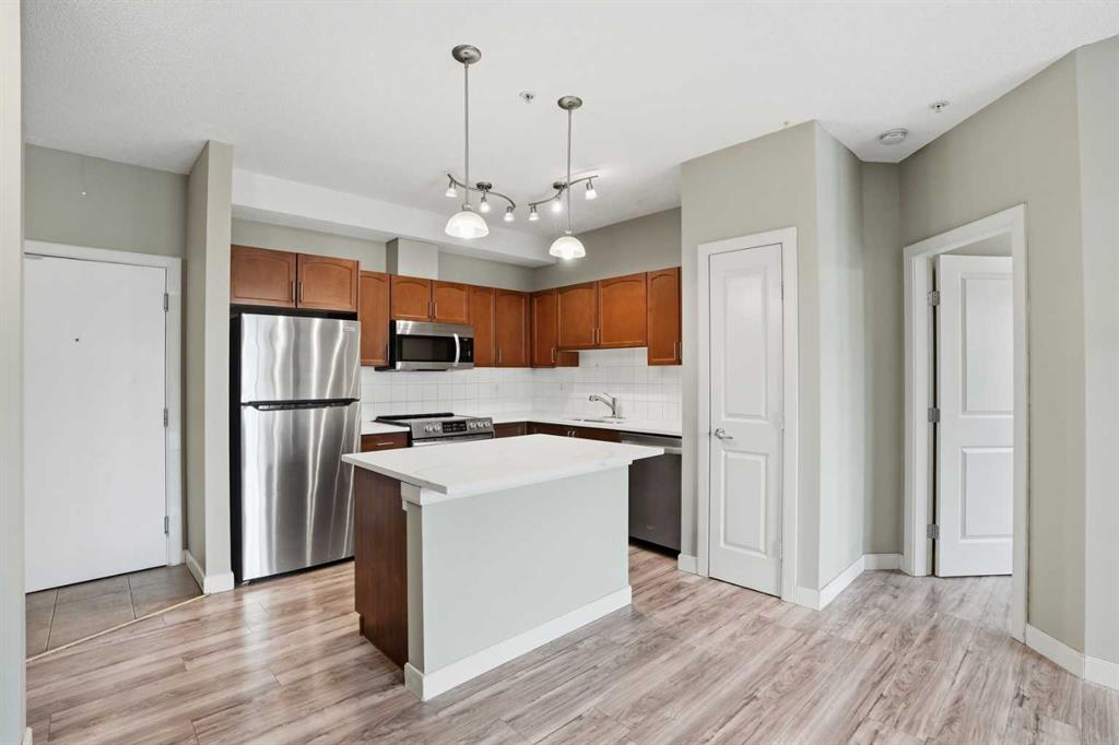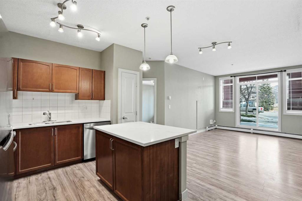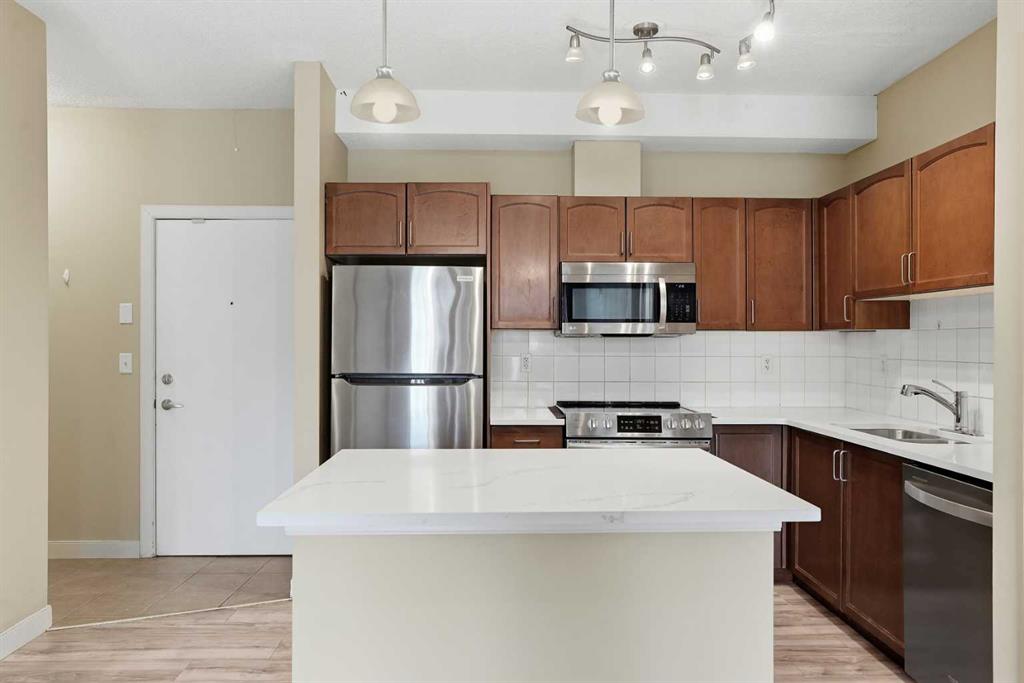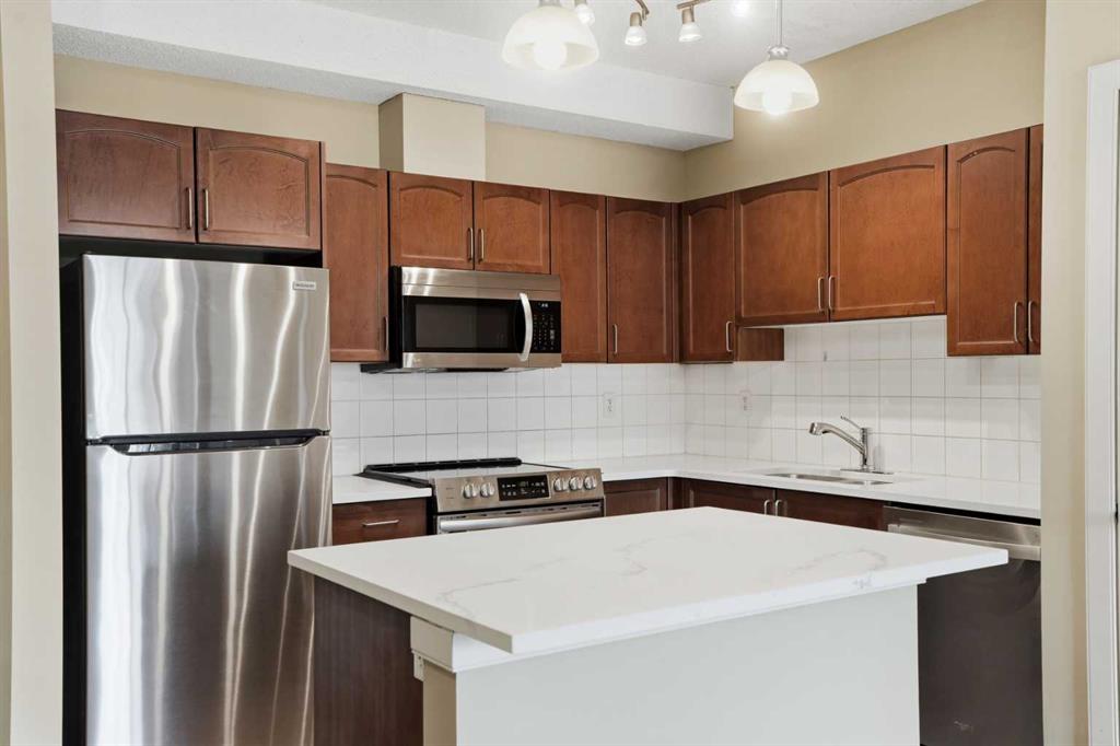 Located on the Country Hills Village Pond | Gorgeous Main Level Apartment | 2 Bedrooms | 2 Bathrooms with New Sinks & Faucets | Open Floor Plan | Bright with Natural Light | Brand New Quartz Countertops | Stainless Steel Appliances | Kitchen Island | Built-in Work Station | Great Storage | In-Unit Laundry | Underground Titled Parking | Secure Entry Building | Visitor Parking. Welcome to this stunning 2 bed, 2 bath main level apartment boasting 847 SqFt with an open floor plan kitchen, dining and living areas. The front door to your home opens to a tiled foyer with closet storage and past this is your in unit laundry. The open floor plan with high ceilings and large windows throughout the kitchen, dining and living rooms compliments the size of the space. The kitchen is outfitted with new quartz countertops, stainless steel appliances and great cabinet storage. The open concept living means you can choose where you\'d like your dining table to go! The living room is comfortable and bright and is paired with sliding glass doors to your patio. The two bedrooms are located on either side of the living room giving additional privacy. The primary bedroom has a walk-through closet to a 3pc ensuite bath. The 2nd bedroom is a great size and just outside the door is the 4pc bath with a tub/shower combo. This unit comes with a titled underground parking stall that keeps your vehicle weather protected year round! Step outside and you’re just moments away from a serene pond, picturesque walking paths, a nearby golf course, public transit, and a variety of shopping and dining options. You’ll also love the easy access to Deerfoot Trail, Stoney Trail, and the Calgary International Airport. Whether you\'re a first-time buyer, investor, or downsizer, this home offers comfort, convenience, and excellent value in a well-maintained building with low condo fees. Book your showing today and experience everything life in Country Hills Village has to offer!