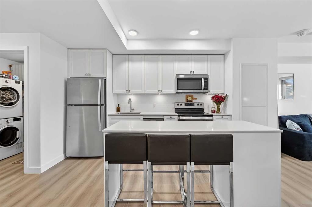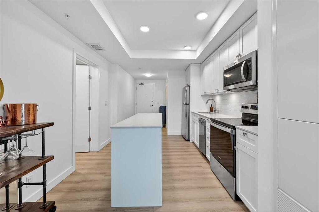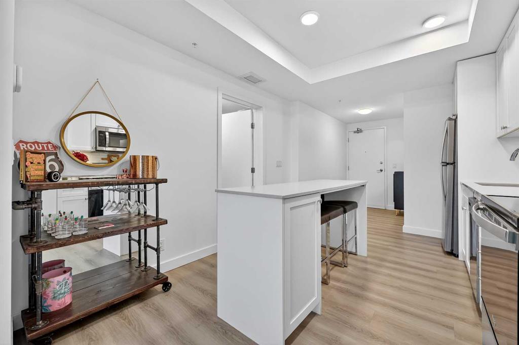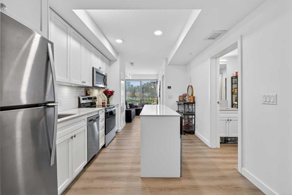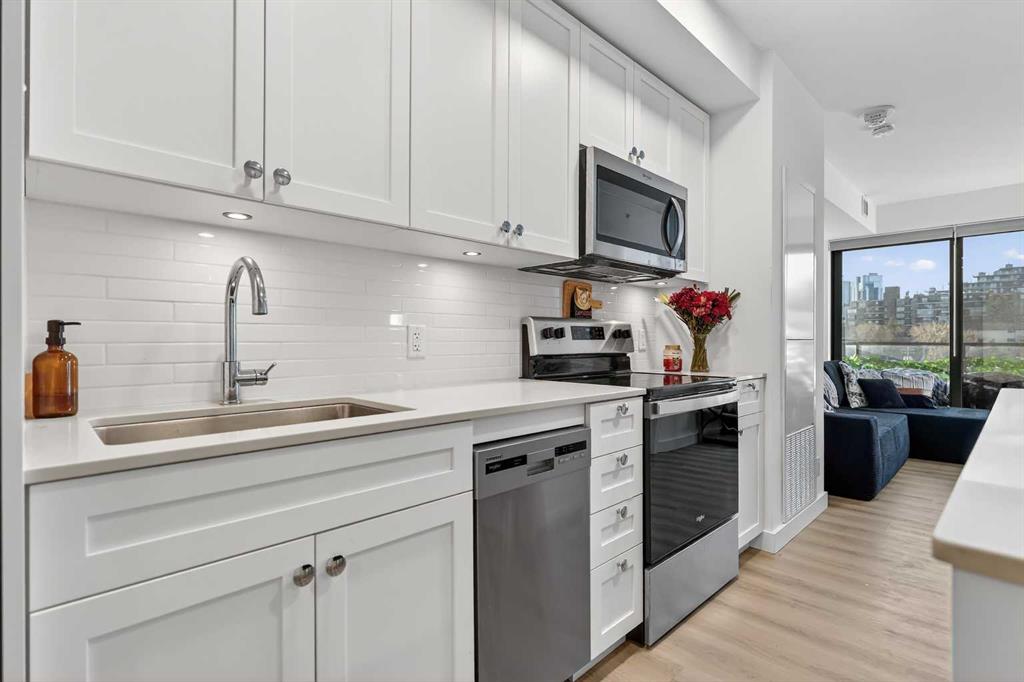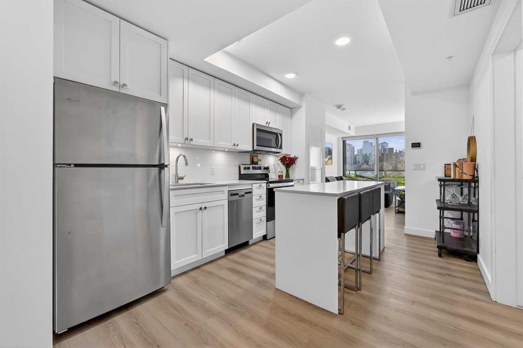 Welcome to ERA by Minto, a modern and AirBnB-friendly building ideally situated between Bridgeland and Crescent Heights. Flooded with natural light, the open-concept design effortlessly unites the sleek kitchen, dining, and living areas and flows onto your private balcony—perfect for morning coffee or evening unwinding. The gourmet kitchen shines with quartz countertops, stainless-steel appliances, a large central island, and designer cabinetry—ready for both daily living and entertaining. Durable vinyl plank flooring, in-suite laundry, and air conditioning ensure year-round comfort, while a titled underground parking stall and dedicated storage locker offer added convenience. Era’s LEED-inspired construction and cutting-edge smart technology elevate your lifestyle with facial-recognition access, one-way video calling, integrated package lockers, community messaging, and a virtual concierge system. Step up to the rooftop patio to enjoy panoramic skyline views, cozy fire pits, BBQ stations, and indoor workspaces—ideal for gatherings or remote work. View of the Bow River, Bridgeland LRT station, river pathways, parks, upbeat restaurants, boutique shops, Calgary Tower and downtown Calgary, this exceptional residence embodies the best of inner-city living. This is your your chance to call Era home—schedule your private tour today!