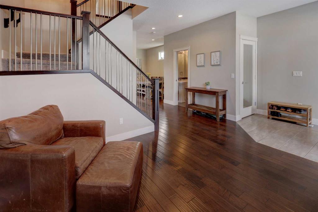 his stunning home offers a very bright & open floor plan, thoughtfully designed for both everyday living & entertaining. The inviting living room features a cozy fireplace & a large window that fills the space with an abundance of natural light. The island kitchen is a true showpiece, showcasing granite countertops, soft-close cabinetry, corner pantry & upper & under LED lighting. High-end stainless steel appliances, including the washer & dryer, complete the space with both style & functionality. The spacious primary suite is a private retreat, featuring a custom walk-in closet with built-in organizers & a luxurious ensuite with a jetted jacuzzi tub & a beautifully tiled rain shower. Two additional well-sized bedrooms & convenient upper-level laundry complete the second floor. The fully developed basement extends the living space with an additional bedroom boasting a large walk-in closet, a full bathroom, & an impressive theatre room with a wet bar—perfect for movie nights or hosting guests. Outside, the south-facing backyard is ideal for enjoying the sun, offering a large deck & an exposed aggregate concrete patio. Additional highlights include air conditioning & a drywalled, heated double detached garage. All this with easy access to downtown & all amenities - SAIT, University of Calgary, shopping, coffee shops, restaurants, public transportation & so much more! You’ll love living here!!!