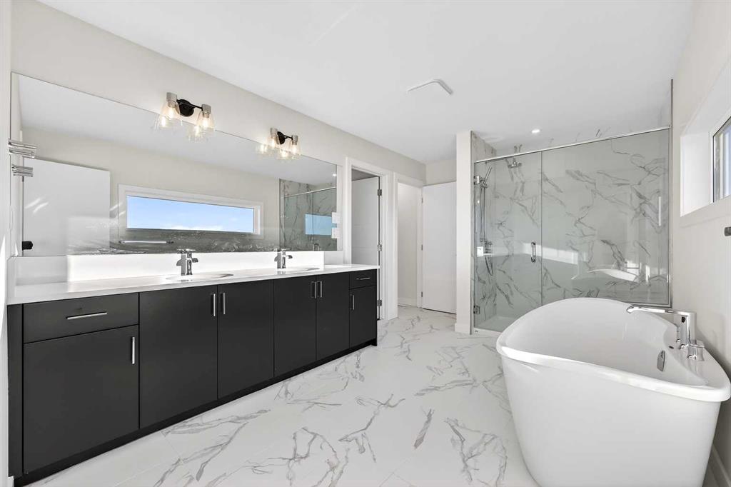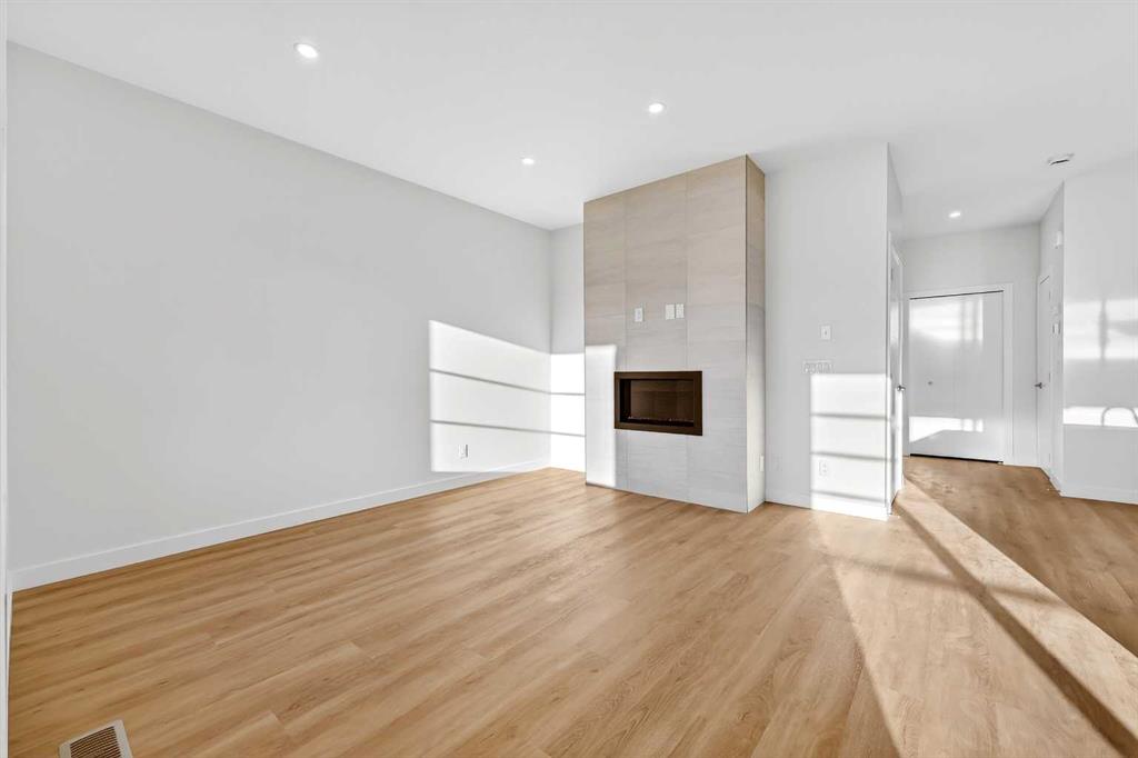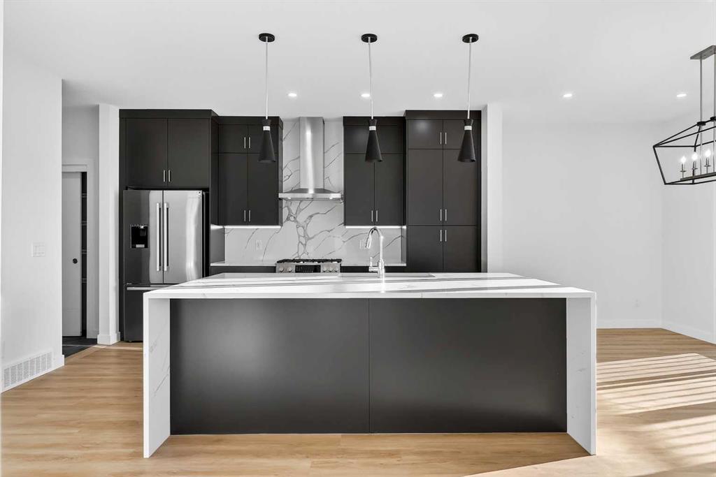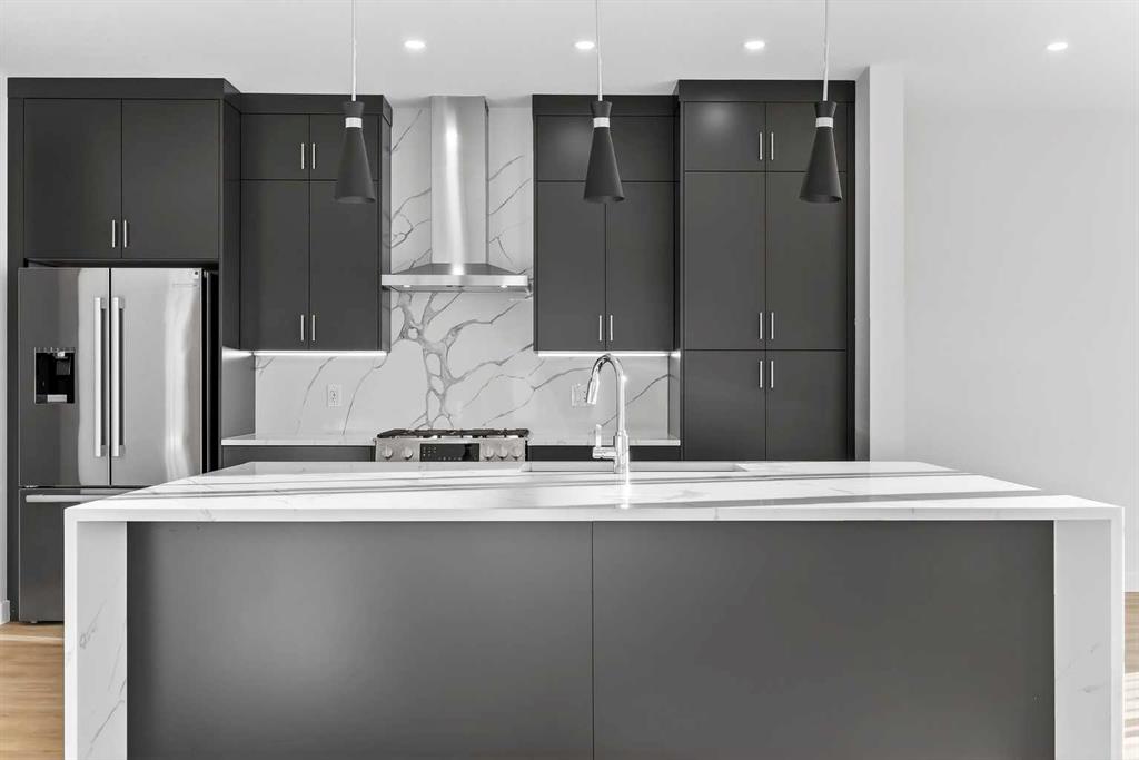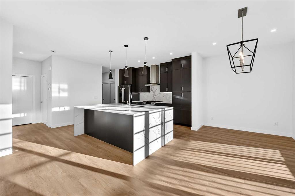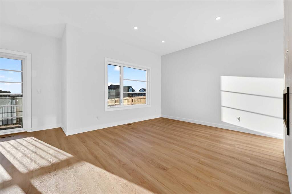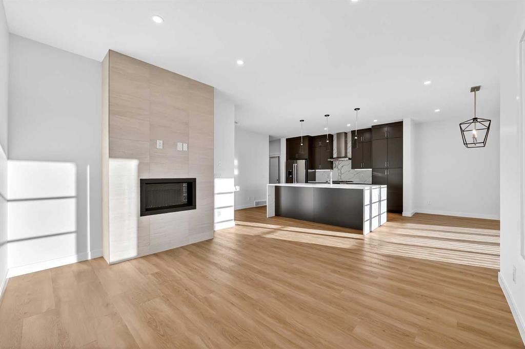 1176 Sailfin Heath for access. Experience the height of sophisticated living in this highly coveted luxury townhome, where a generous floor plan meets modern comfort and refined finishes. Proudly presented by StreetSide – this thoughtfully designed unit features 3 bedrooms, 2.5 bathrooms, and a front attached double car garage. The heart of the home is a spacious kitchen with a large central island, polished white quartz countertops, upgraded stainless steel appliances including a gas range, and elegant sliding French patio doors that opens to your covered deck area - ideal for both everyday living and entertaining. A cozy fireplace anchors the living room, while luxury vinyl plank flooring flows throughout the main living areas, complemented by gorgeous tile in the entry and bathrooms. The primary ensuite is a private sanctuary, complete with heated tile flooring, double sinks, a freestanding soaker tub, and an oversized tile-and-glass shower delivering spa-inspired comfort at home. The unfinished basement with roughed-in plumbing provides future potential for additional living space tailored to your needs. Professional landscaping and fencing complete your new home. Ideally located in the award-winning community of Harmony, residents enjoy Mickelson National Golf Course, private lake amenities, scenic walking and biking trails, and a wellness-focused lifestyle—just a shorty drive from Calgary city minutes and 45 minutes from the Rocky Mountains, where nature and convenience come together effortlessly