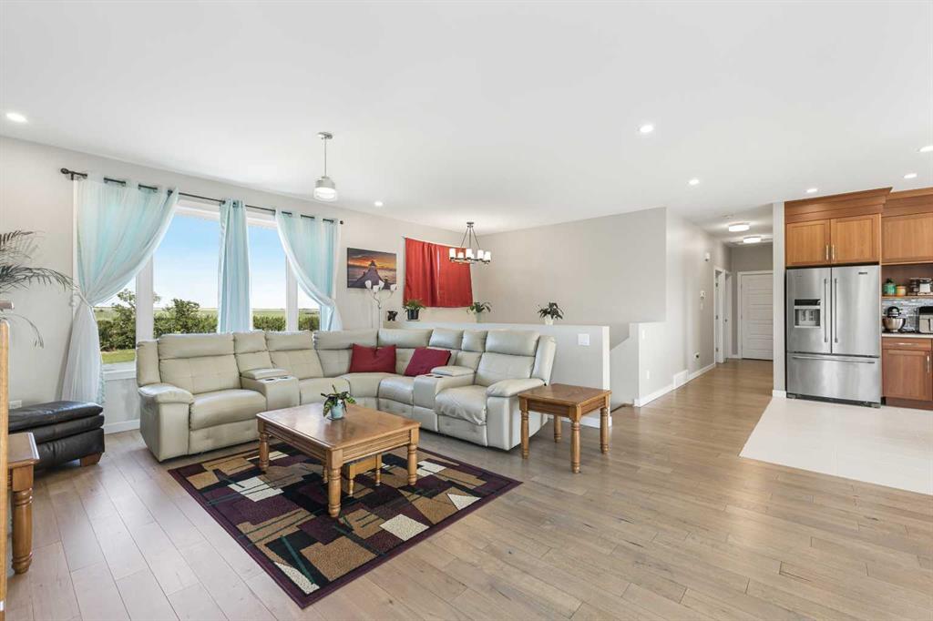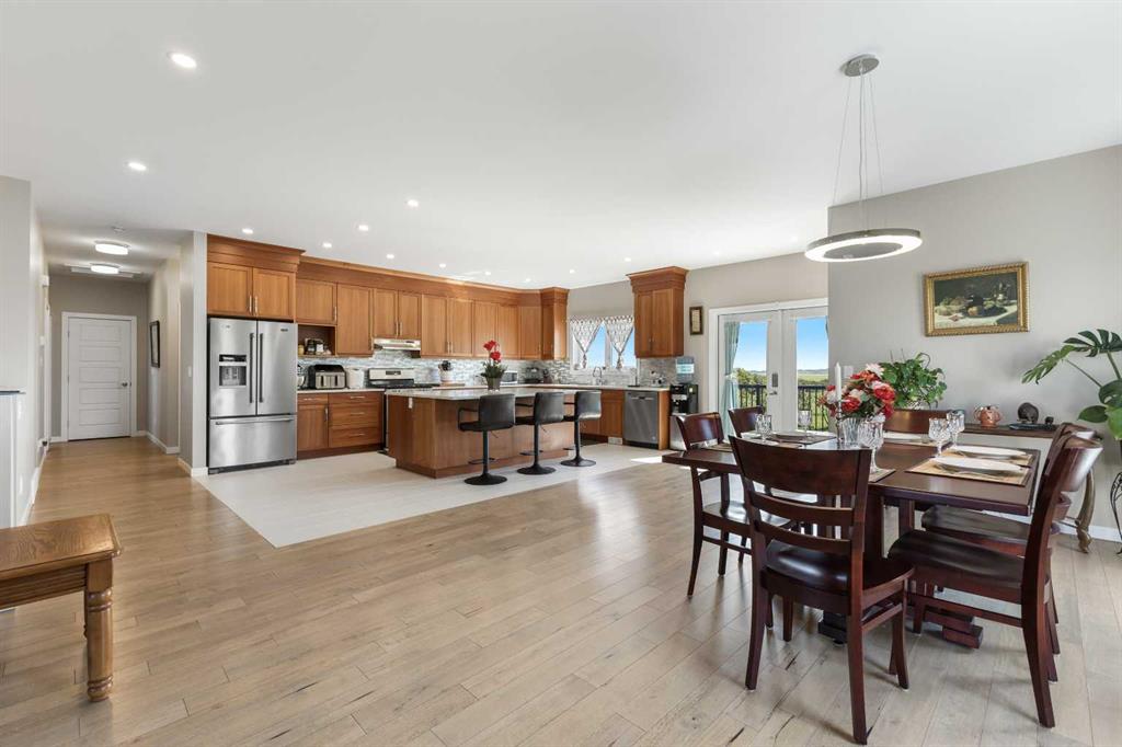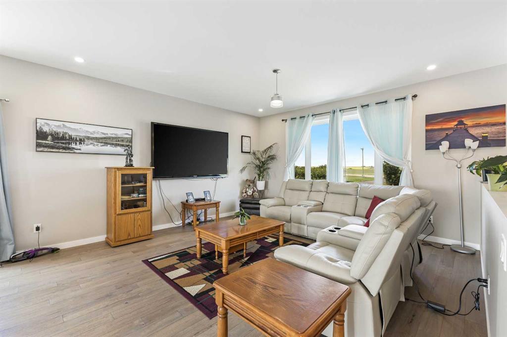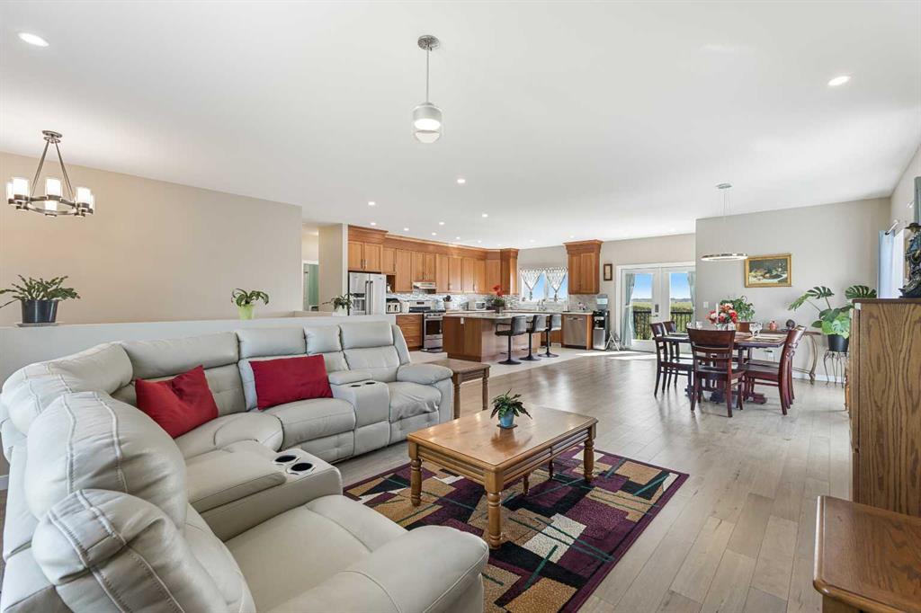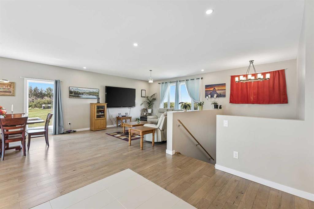 **Welcome to your spacious acreage just minutes from Strathmore!** Enjoy the perfect balance of country serenity and city convenience with quick access to all amenities and an easy commute to Calgary via Highway 1. Set on 5 acres with paved access and no gravel roads, this impressive property offers breathtaking west-facing mountain views on clear days. The well designed, air-conditioned bi-level home offers over 3,760 sq. ft of developed living space, featuring five bedrooms (plus two potential rooms you could convert to extra bedrooms) and three full bathrooms. The primary suite is a true retreat with a large walk-in closet and a beautifully appointed ensuite with dual vanities. Recent upgrades include hardwood floors and a custom gourmet kitchen with quartz countertops, ample cabinetry, and a large island—ideal for entertaining. The bright dining and living areas are framed by west-facing windows that capture stunning sunsets. The fully developed basement boasts in-floor heating, and includes a large family room, three additional bedrooms, a full bathroom, a laundry room, and a versatile flex/storage space. The home is equipped with triple-glazed windows, Hardie board siding, a Dura Deck, two sump pumps, a boiler, a forced air system, and in-floor heating throughout. Central air conditioning keeps the home comfortable year-round. Outside, the 45\' x 40\' heated shop is a showstopper. It includes 220V power, 12-foot and 18-foot doors, and space to accommodate up to nine vehicles, making it perfect for car enthusiasts, contractors, or hobbyists. This is more than just a home—it\'s a lifestyle. Schedule your private viewing with your favourite real estate professional today.