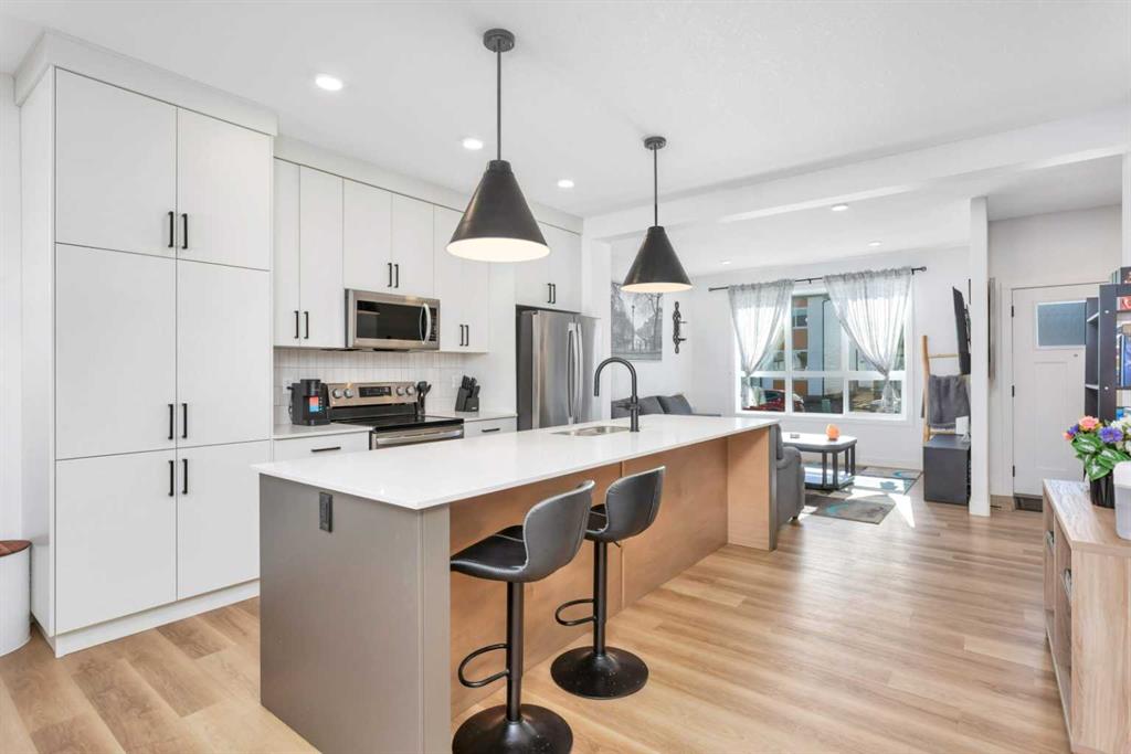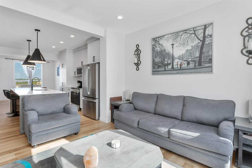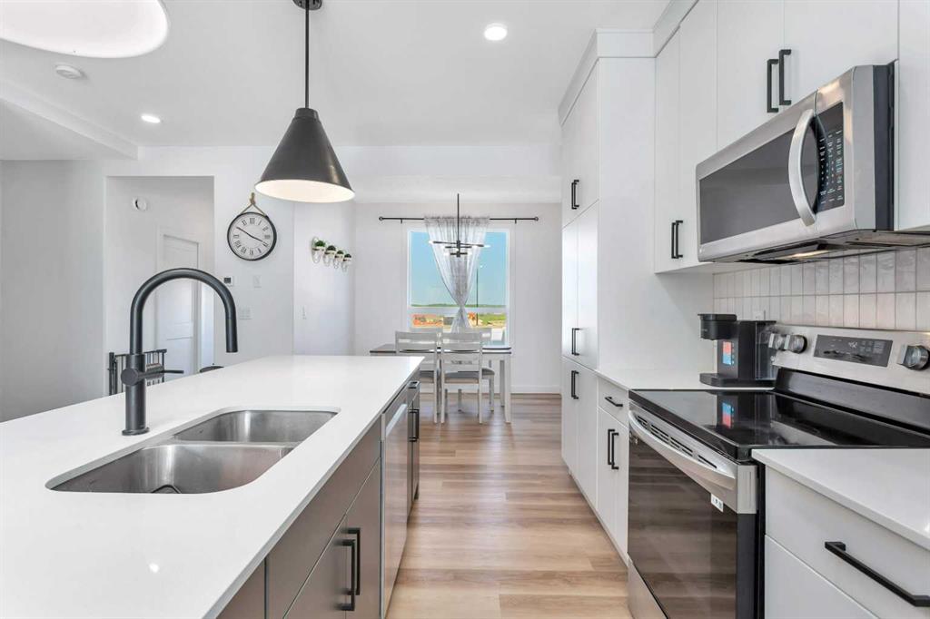 END UNIT with A/C and March 1 possession available. Stylish, spacious, and modern 2-storey townhome in the new community of Iron Gate, offering low-maintenance living and peace of mind with Alberta New Home Warranty still in place. Enjoy your charming 7\' x 7\' front deck before entering a bright, open-concept main floor filled with natural light from large energy-efficient triple-pane windows. Durable vinyl plank flooring runs throughout the main level, while plush carpet upstairs adds warmth and comfort.