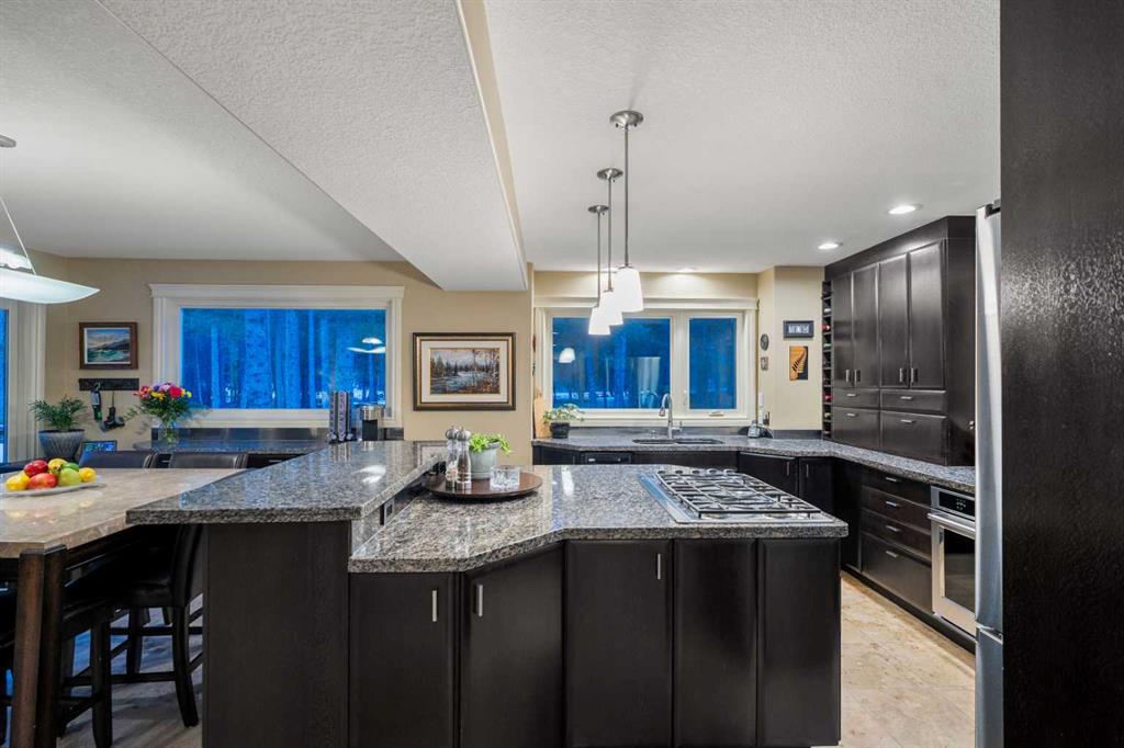 With its remarkable setting and superior home quality, this property stands as one of Bragg Creek’s rarest and most sought after opportunities. Situated on a prime, park-like 0.46 acre lot in the heart of Bragg Creek, this exceptional creekside property offers an unparalleled lifestyle surrounded by nature. With the creek running along 2 sides & municipal reserve land across the water that can’t be developed, privacy and serenity are assured. Spruce trees frame the setting, while a scenic pathway along the creek invites year-round exploring. Inside, the home creates the sensation of a permanent escape, where everyday living is framed by warmth, tranquility, & stunning natural surroundings.This custom built 2 storey home offers 2650 sq.ft of beautifully designed living space on the main & upper levels. Seamless kitchen, dining, & living spaces open to a stunning 2 level deck with picturesque creek views. The vaulted great room showcases floor to ceiling south facing windows & a spectacular 2 storey Rundle stone fireplace as the centrepiece of the home. Spacious family room with a 2nd fireplace provides a cozy retreat, while a main floor office & convenient main floor laundry add ideal functionality. Chef-inspired kitchen features granite countertops, black lacewood cabinetry, premium appliances including a commercial grade gas cooktop, double wall ovens & a smart refrigerator. Hardwood, limestone tile flooring with in-floor heating elevate the level of comfort and craftsmanship. Upstairs, every window captures picturesque views of the surrounding trees & creek, creating a calm retreat. The upper level offers 3 large bedrooms with excellent closet space + organizers. The spacious primary suite has a walk-in closet & a full ensuite complete with a large Bain Ultra soaker/air bubble tub & separate walk-in shower. Bright and roomy family bathroom serves the additional bedrooms, providing comfort and functionality for family or guests. Fully developed basement includes a spacious bedroom & full bathroom with stand-up shower. The games room & home gym area would also make a great additional living area or playroom. There is also a unique storage room ideal for pantry or wine storage. Extensive upgrades provide peace of mind, including newer shingles, triple-pane windows & doors, spray foam attic insulation (2024), updated furnaces, tankless hot water, septic components, & a Generac 20KW whole-home backup generator. Located just a 15 minute walk (or 3 minute drive) to the charming village centre & only 25 minutes to Calgary, this is a rare opportunity to own a distinctive waterfront property in one of Rocky View County’s most desirable hamlets. This home is on the bus route to schools, close to shops & restaurants. West Bragg Creek Provincial recreation area is just 8 minutes away for all the cross country skiing & biking enthusiasts. Remarkable home + extraordinary setting results in an exceptional lifestyle opportunity. Call to book your showing today.