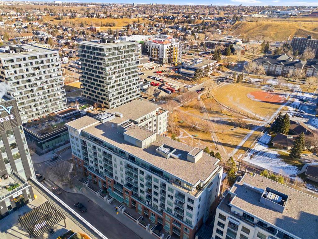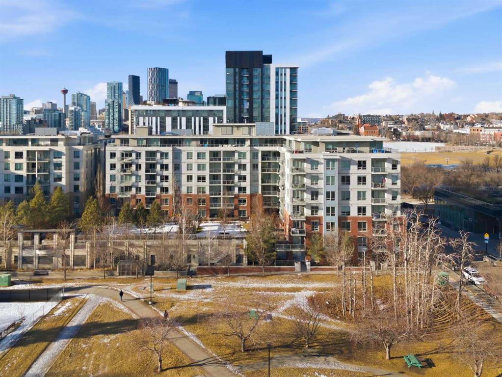 STUNNING INNER-CITY LIVING | MODERN UPSCALE DESIGN | PRIME BRIDGELAND LOCATION! Don’t miss out on this exceptional opportunity to own a gorgeous, move-in-ready condo in the heart of highly sought-after Bridgeland! This open-concept unit showcases upscale designer finishes throughout and offers an unbeatable lifestyle just steps away from local shops, cafes, restaurants, the Bow River, and extensive pathway systems. Highlights of this modern home include a MODERN KITCHEN with a tasteful, sleek design featuring beautiful QUARTZ COUNTERS | quality SS appliances | a GAS COOKTOP | and integrated cabinetry. This unit includes a TITLED PARKING stall, and a STORAGE LOCKER located on the same level! The smart and spacious layout is perfect for entertaining, featuring stylish laminate flooring and 2 large bedrooms positioned on opposite sides of the unit for ultimate privacy. Large living and dining areas separate the bedrooms, all while offering beautiful, serene views of the courtyard and nearby greenspaces. This complex offers an impressive array of AMENITIES, including: Two well-equipped Fitness Rooms, a Party Room with a Private Theatre, Guest Suite for visitors, Secure Bike Storage, a lush Courtyard with a patio/BBQ area and Garden Spaces, and more! This complex is also pet-friendly (with board approval). Enjoy the vibrant energy of Bridgeland with nearby parks right at your doorstep, featuring the Murdoch Park with its popular summer Farmers’ Market, and you are only minutes away from Inglewood, East Village, the Calgary Zoo, TELUS Spark, and LRT access for an easy commute. This home perfectly blends URBAN LUXURY and everyday convenience, making it ideal for any living scenario… come check it out before it’s gone!