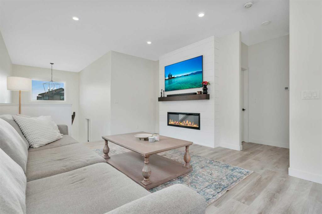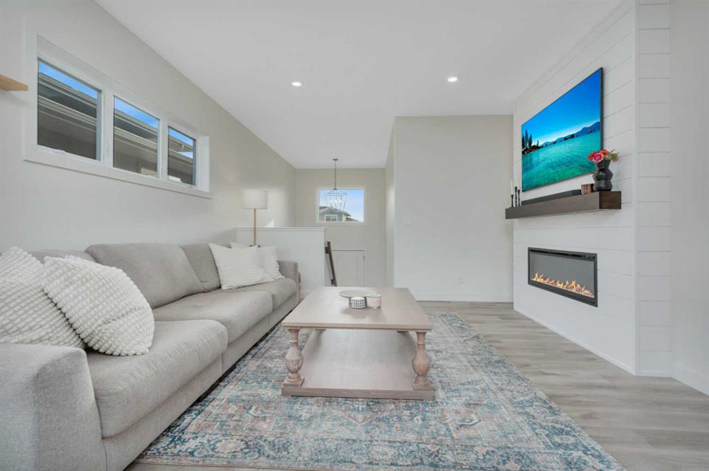 Built in 2022 and still sparkling like it\'s band new this amazing bi-level welcomes you in from the second you step through the front door and into the well lit and spacious foyer. Walk up a few steps to the wide open and inviting main floor. Neutral tone paint and vinyl plank flooring accented with black light fixtures and cabinet pulls. The current owners built a beautiful feature wall consisting of shiplap and a timber mantle. A framed television and electric fireplace complete the look and cozy ambience. Continue on to the dining and kitchen where you can enjoy eating at your large breakfast nook. The Kitchen has beautiful herringbone tile backsplash and black print proof stainless steel appliances. There is a whole wall of cabinetry allowing for lots of storage in this well thought out kitchen! Primary bedroom features a nice sized walk in closet, ensuite w/custom tiled shower and high pressure rain shower head for a most relaxing shower. 2 more bedrooms and a 4pc bathroom complete the main floor. Walk out the back garden door to a good sized patio with black aluminum railing. Great for summer bbq\'s and family get togethers. Gas line is plumbed in for bbq and just needs to be run up to the patio. An added bonus for those hot summer nights is the Central A/C. Backyard is fully fenced and landscaped. Basement is unfinished and ready for your design ideas. Penhold Recreation Center and new middle and high schools are just a 5 minute walk away and Red Deer is a short 8 minute drive. Make the move and enjoy small town living at it\'s finest.