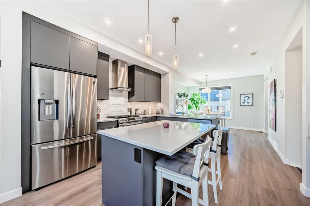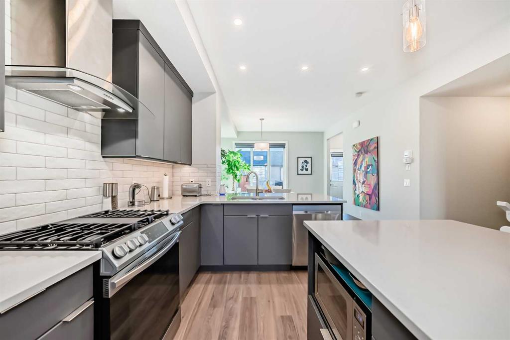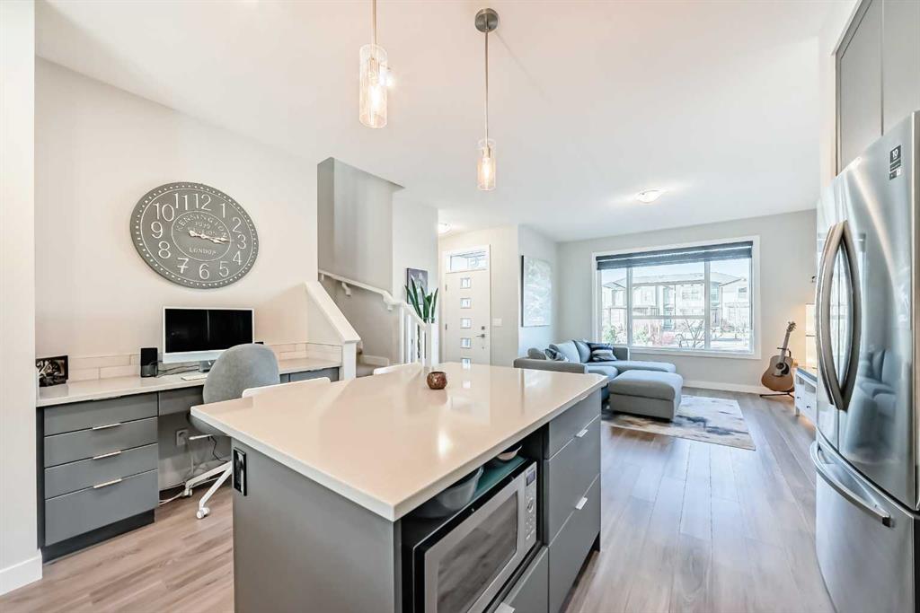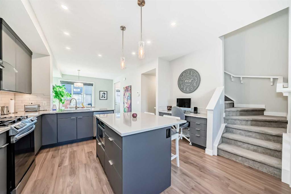 Click brochure link for more details. Welcome to Wolf Willow! This stunning townhouse sits on one of the most desirable streets in the community, with a pathway promenade that will connect with the river pathways leading into fish creek. This no condo fee townhouse features many builder upgrades, including upgraded railings and skylight. This home also features a soft water system. The main floor has plenty of space for family or entertaining. The Kitchen has an upgraded modern cabinetry with backsplash and beautiful quartz countertops with plenty of seating all around. You will love the upgraded appliances, including gas stove! The main floor has massive windows allowing for tons of sunlight , with high quality window coverings. There is also a nook set up as flex space for computer or coffee/wine bar. A two piece powder room also on the main floor. Upstairs you will find a large master bedroom with walk in closet and ensuite with shower and plenty of cabinet space. there is a second bedroom as well as a loft/flex space. There is another full bathroom with tub on the second floor. The basement is unfinished and ready for your input. Out back you will find a nice deck with bbq gas line and fully fenced yard space to enjoy your summer months. Also a detached insulated and heated garage to keep your car cozy in the winter months. You will be close to many amenities and shopping close by as well as dog parks.