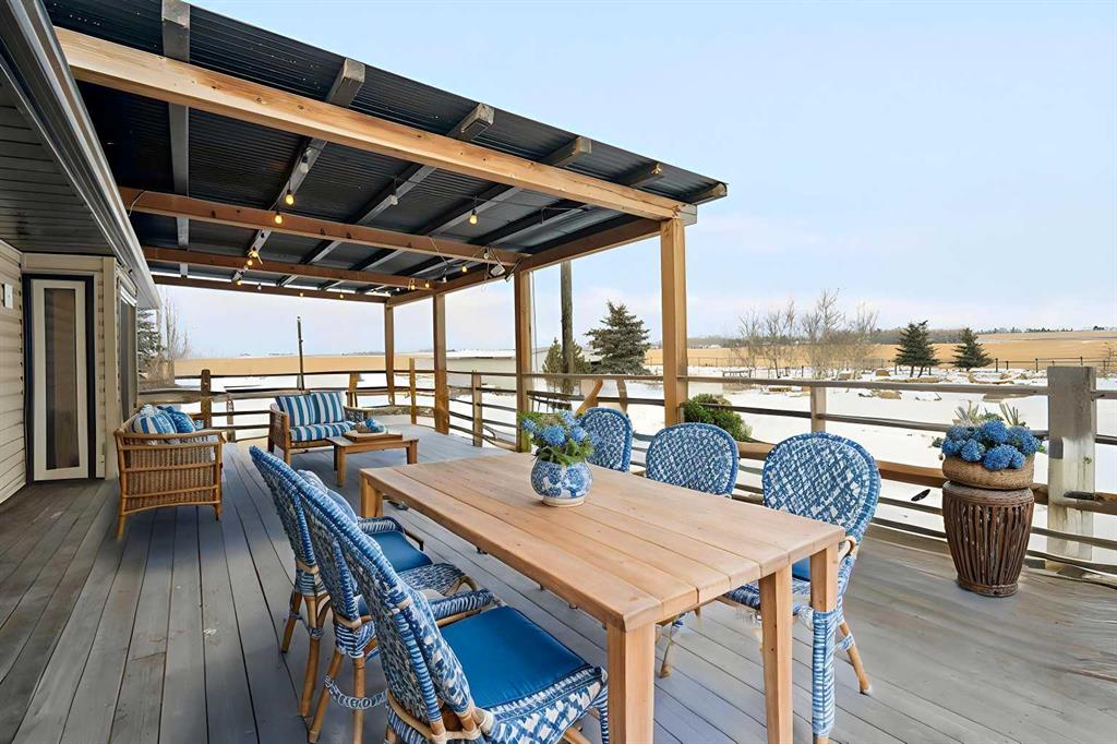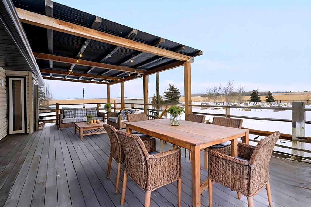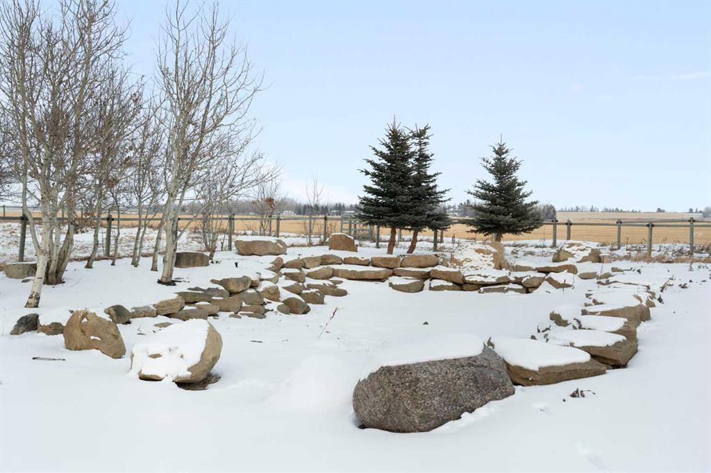 Welcome to a fantastic 5-ACRE opportunity with a residence (Open House Sat Feb 28 /1:30pm-3:30pm)—experience the charm of countryside living just minutes from Calgary’s city limits! This unbeatable location offers a practical blend of space, functionality, long-term value, and the privacy of acreage living—situated just minutes from Stoney Trail, Métis Trail, and the rapidly growing Cornerstone Plaza, with shopping, restaurants, and everyday amenities. A private gated entrance opens onto a fully paved, tree-lined driveway, surrounded by mature evergreens and featuring two newly added apple trees, creating a clean, private, and welcoming approach to the home. The 5-bedroom bungalow boasts a WALKOUT basement, an upgraded kitchen with a sliding patio door for seamless indoor-outdoor living, refreshed bathrooms with spa-like steam showers in the ensuite. The WRAP-AROUND deck is perfect for entertaining friends and family with BBQs or special events while enjoying serene countryside views. An accessible ramp adds functional outdoor living convenience. The property also features a tranquil pond, a productive VEGE-Garden, and a dedicated dirt playground perfect for kids to play safely outdoors. A large BARN/outbuilding currently serves as an oversized garage and workshop—offering ample space for equipment, storage, hobby farming, or future plans. Zoned R-RUR (Rural Residential), this parcel offers flexibility and long-term stability for families, acreage buyers, or investors seeking land in a high-growth corridor. With excellent access to major roadways and city amenities, yet surrounded by open space, privacy, and nature, this spacious acreage combines practical day-to-day living with strong future potential. Don’t miss this opportunity to secure 5 acres in one of Rocky View County’s most desirable and fastest-growing areas.