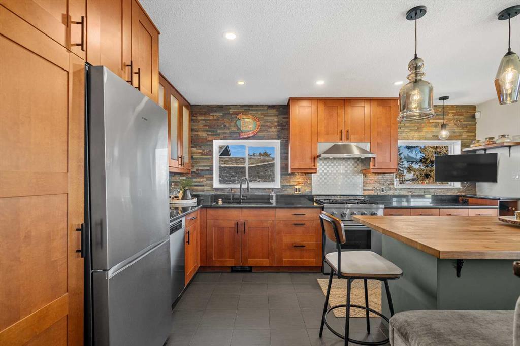 Welcome to 4636 Montana Drive NW, a meticulously maintained and thoughtfully updated 4 bedroom, 3 bathroom home on a rare oversized lot in the highly sought-after NW Calgary community of Montgomery, where homes on this street are rarely offered for sale. Ideally located minutes to downtown, University District, Market Mall, Foothills Hospital, and Alberta Children’s Hospital. The main level offers a spacious living room that flows naturally into the dining area, which features an electric fireplace, creating a warm and functional layout for everyday living and entertaining. The kitchen is a true highlight of the home, thoughtfully designed for both function and connection. It features quartz countertops, a large custom island, built-in bench seating, upgraded appliances including a gas stove, and excellent flow directly into the sunroom. The sunroom offers additional flexible living space with large windows, wood ceiling detailing, and a natural gas fireplace, creating a bright and comfortable extension of the main floor. Two generous bedrooms on this level provide excellent flexibility, including a spacious primary retreat with a beautifully renovated five-piece ensuite. The second bedroom has been thoughtfully reimagined as an expansive custom walk-in dressing room connected to the ensuite, creating a boutique-style primary retreat, while still offering the flexibility to function as a secondary bedroom if desired, and is conveniently located near the four-piece main bathroom featuring a jetted tub. The fully developed lower level adds significant flexibility. A large family room offers generous space for movie nights, games, or a second living area. Two additional well-sized bedrooms are complemented by a thoughtfully designed bathroom with a private vanity room and a separate enclosed shower. A spacious laundry area and ample storage complete the level. The outdoor space is equally impressive. A long paved driveway, rear RV parking, and a fully fenced yard provide exceptional usability of the lot. Mature trees and established landscaping create a sense of privacy and permanence. A two-person Spaberry hot tub and large poly shed are included. Two heated garages and further enhance the functionality of the property. The newer 24’x33’ oversized rear garage is fully insulated and heated and offers excellent space for parking, workshop use, hobbies, or organized storage, including metal shelving. The second 16’x24’ heated garage is currently set up as a gym and provides additional flexible space depending on lifestyle needs. This dual-garage setup is a rare offering. Additional features include air conditioning, on-demand hot water system, water softener, security system, and thoughtful storage throughout. Backing onto green space and within walking distance to an off-leash park, playgrounds, shops, restaurants, and everyday amenities, this property offers space, character, and flexibility in one of NW Calgary’s most desirable communities.