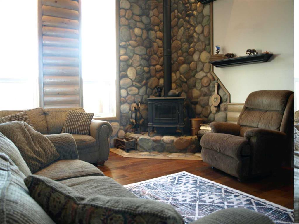 Step into this exceptional home, thoughtfully built with ICF concrete block walls from foundation to ceiling, for superior energy efficiency, strength, and year-round comfort. A welcoming foyer opens into a stunning living room highlighted by soaring vaulted ceilings and an abundance of natural light, creating a comfortable, open atmosphere. Cozy up by the wood stove—perfect for relaxing evenings with family or entertaining guests. The expansive kitchen is truly the heart of the home, designed to impress with custom hickory cabinetry, solid granite countertops, and generous workspace. Whether hosting gatherings or enjoying everyday meals, this chef-inspired space makes cooking both effortless and enjoyable. Retreat to the spacious primary suite, complete with a luxurious ensuite featuring a soaker tub and steam shower—your own private spa experience. Four additional bedrooms offer exceptional flexibility for family, guests, or home office needs. The walk-out basement provides easy access to the 4 acre beautifully landscaped property, while the wrap-around deck is ideal for entertaining, summer barbecues, or simply unwinding and taking in the surroundings. Additional highlights include in-floor heating for cozy winters, wiring for a home generator is in place for added peace of mind, and connection to treated town water—offering the perfect blend of rural living and modern convenience. A domestic irrigation turn out is on the property to meet all of your watering needs, whether you are an avid gardener, lawn expert, or to maintain the beautiful established trees on the property. This remarkable property truly has it all—schedule your viewing today and experience it for yourself!