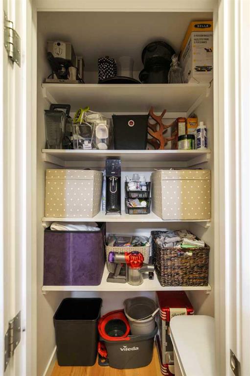 Additional highlights include in-suite laundry with built-in shelving and a functional countertop, along with an impressively large in-suite storage room that offers versatility rarely found in condo living.
