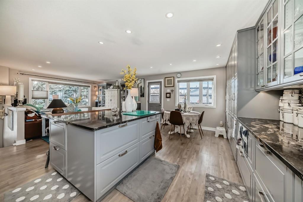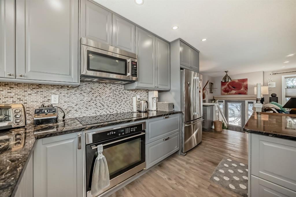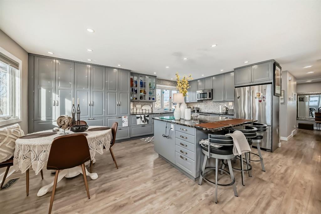 Welcome to this exceptionally well updated Bi-level, perfectly positioned on a spacious, fully landscaped and fully fenced corner lot with striking stamped concrete front sidewalks and excellent curb appeal. This move in ready home also offers RV parking and a 26\' x 38\' heated detached garage with new shingles, making a strong first impression from the moment you arrive. Step inside to a bright, welcoming upper level that has been completely transformed. The sun filled, south facing living room features triple pane windows throughout the home, providing enhanced energy efficiency, comfort and sound reduction. The open concept kitchen and dining area is designed for both everyday living and entertaining, showcasing granite countertops, an oversized 5’ x 5’ island with eating bar, under cabinet lighting and a sleek hidden dishwasher for a clean, modern aesthetic. Tons of storage has been added with custom cabinetry, including slide out organizers in every cupboard and closet, delivering outstanding space for organization.