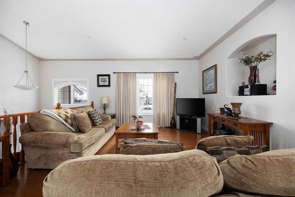 The main level showcases beautiful hardwood flooring, solid wood cabinetry, and immaculately maintained . The Bright & Spacious Kitchen Boast Solid Wood raised panel cabinets , Crown molding, Under Cabinet valance , Large Farm sink (looking onto the greenspace) Corner Pantry, Loads of cupboards & counter space, Open concept to the Sunny Dinette area with tile flooring & access to the back deck . You’ll also find three generously sized bedrooms on the main level, including a Spacious primary suite with hardwood flooring & a spa-like ensuite, complete with a soaker jetted tub, arched pillars, and a stand-up shower, Closet organizer & wooden shelves. Two additional bedrooms on the main level also boast hardwood flooring and are complemented by a full bathroom.