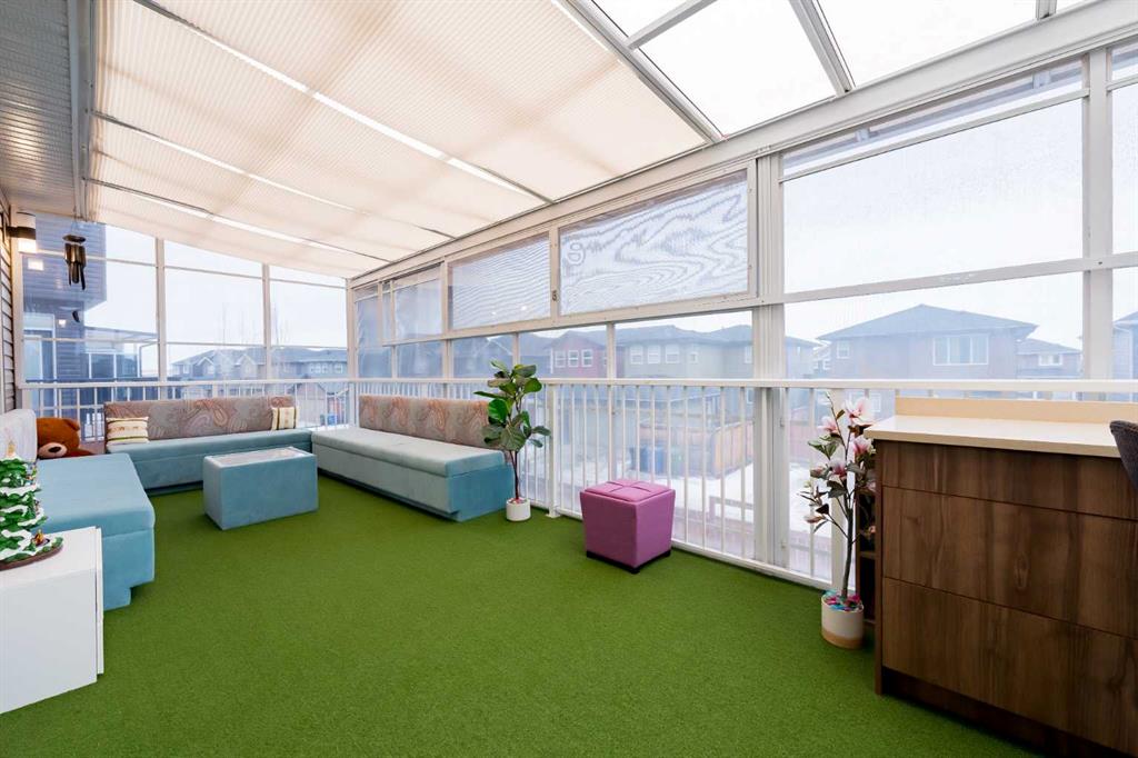 **Fully developed with a walkout basement, approximately 3,300 sq. ft. of total developed living space, two three-season sunrooms (approx. 450 sq. ft.), a 6.4 kW solar panel system (16 panels), a 200-amp electrical panel, epoxy flooring in the garage, and low-maintenance artificial turf in the backyard—features like these are rarely found at this price point**. Welcome to this beautifully upgraded home in the highly sought-after community of Evanston, situated on a traditional 35-ft-wide lot and offering approximately 3,300 sq. ft. of fully developed living space. The main floor features a private office/den, a spacious, sun-filled living area with large windows, a dining area with custom seating, and elegant high-end laminate flooring, complemented by 9-foot ceilings. The chef’s kitchen is designed to impress, featuring quartz countertops, under-cabinet lighting, ceiling-height cabinetry, and premium stainless-steel appliances, including a Bosch built-in oven and microwave. A walk-through pantry with durable titanium wire shelving adds everyday convenience. A convenient half bath (with potential to convert to a full bath) and a three-season sunroom just off the living room complete the main level. Upstairs, a large bonus room sits centrally, thoughtfully separating the primary bedroom from the two additional bedrooms. This bonus space includes custom seating—perfect for movie nights or family gatherings. The primary bedroom offers a walk-in closet, a luxurious 5-piece ensuite with dual sinks, a custom standing shower, and a soaker tub. Two additional well-sized bedrooms, an upper-floor laundry room, and a second full bathroom featuring dual sinks and a standing shower with a custom tile base complete the upper level. The fully developed walkout basement offers a wet bar, a four-piece bathroom, and a spacious recreation area ideal for a home theatre, gym, or playroom. A SONOS 7.1 home theatre speaker system and an electric fireplace add comfort and entertainment value. The walkout layout also provides excellent potential to convert the basement into a legal suite (subject to City approval). Located in the vibrant, family-friendly community of Evanston, this home offers easy access to Stoney Trail, top-rated public and Catholic schools (including a new middle school opening soon), parks, walking paths, and nearby shopping centres. Recent updates include: roof and siding (2024), new carpet (2025), and fresh interior paint (2025). A water purifier, water softener, and home theatre system are included in the sale. This home stands out not only for its luxury finishes but also for its energy-efficient upgrades. The 6.4 kW solar panel system (16 panels) significantly reduces electricity costs, offering long-term savings and protection against rising energy prices—an increasingly valuable feature for today’s discerning buyers. Don’t miss this exceptional opportunity—book your private showing today!