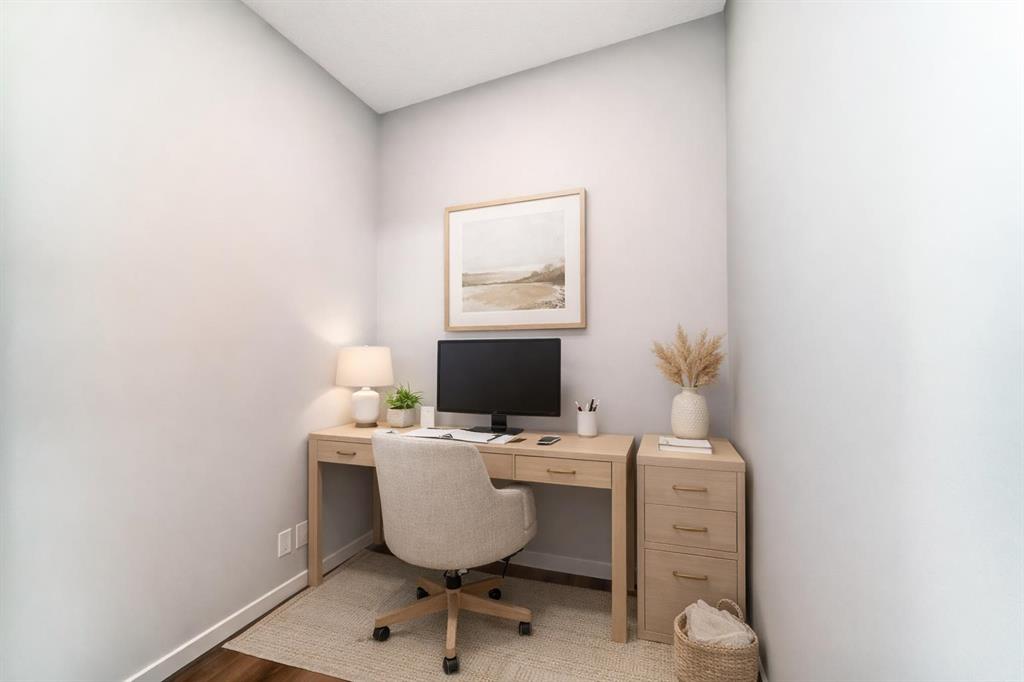 The POCKET OFFICE near the front door is the unsung hero here — small, intentional, and wildly useful. It keeps laptops, homework, and “I’ll just answer one email” moments off the dining table, which turns out to be LIFE-CHANGING. The open living and dining area does what it should: hosts comfortably, moves easily, and never asks you to apologize for furniture placement. Out back, a 10\'×10\' DECK takes care of BBQ season, overlooking the lane and a CONCRETE PARKING PAD that’s ready for everyday use now.