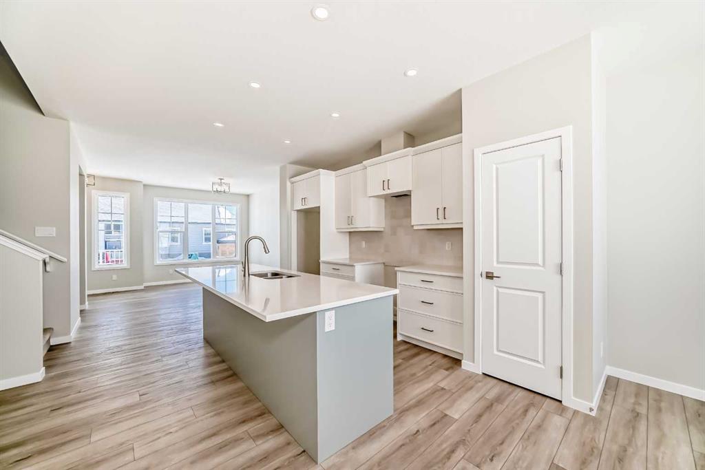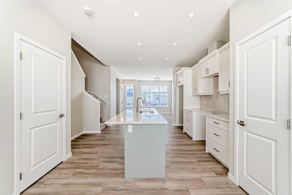 Welcome to The Brian—a thoughtfully designed home that maximizes every square foot while delivering the bright, inviting atmosphere you’ll love coming home to. From the moment you arrive, the large front step creates a welcoming first impression, setting the tone for a home that balances style, comfort, and affordability without compromise. Step inside and you’ll immediately appreciate the smart, functional flow from front to back. A convenient main-floor office/flex space is perfectly positioned for modern living—ideal for working from home, a kids’ play zone, or a hobby/craft room. The main level opens into a bright, wide-open living space where large windows at both the front and back allow natural light to cascade throughout the day, creating a warm and calming environment you’ll love to unwind in. At the heart of the home is a sleek galley-style kitchen designed for both everyday life and hosting. You’ll love the large central island—perfect for entertaining, casual meals, or gathering with friends while dinner is on the go. Finished with two-tone cabinetry, soft-close cabinet doors, quartz countertops, and pot-and-pan drawers, the kitchen delivers standout style with the practical storage you actually need. Upgrades continue with a gas line to the kitchen range and a gas line for your BBQ, making it easy to elevate your cooking—inside and out. Completing the main level is luxury vinyl plank flooring throughout, offering a modern look with durability that fits busy lifestyles. At the back entry, a dedicated rear mudroom helps keep daily clutter organized and out of sight—making mornings smoother and busy family life more manageable. Upstairs, the home continues to impress with thoughtful design choices. The upper-floor laundry room is conveniently located so you can close the door and keep things tidy. The primary suite is a true retreat featuring a generous walk-in closet and an ensuite that’s made for real life—complete with a separate tub and private toilet area, giving everyone more space and privacy to get ready without feeling crowded. With the ensuite and walk-in closet connected, the routine from shower to getting dressed feels seamless and effortless. Outside, you’ll appreciate that a concrete parking pad is already in place for future garage development, adding flexibility and long-term value as your needs evolve. Bright, functional, and thoughtfully upgraded, The Brian is a home that proves affordability and great design can absolutely go hand in hand. Living in Vista Crossing means enjoying the best of both worlds: the convenience of city living just a short drive from Calgary, paired with the charm and slower pace of small-town life in Crossfield. This thoughtfully planned community fosters a strong sense of belonging and connection, where neighbours look out for one another and life revolves around family. Vista Crossing offers endless opportunities for recreation with walking trails, protected wetlands, 20 acres of green spaces & Community Garden