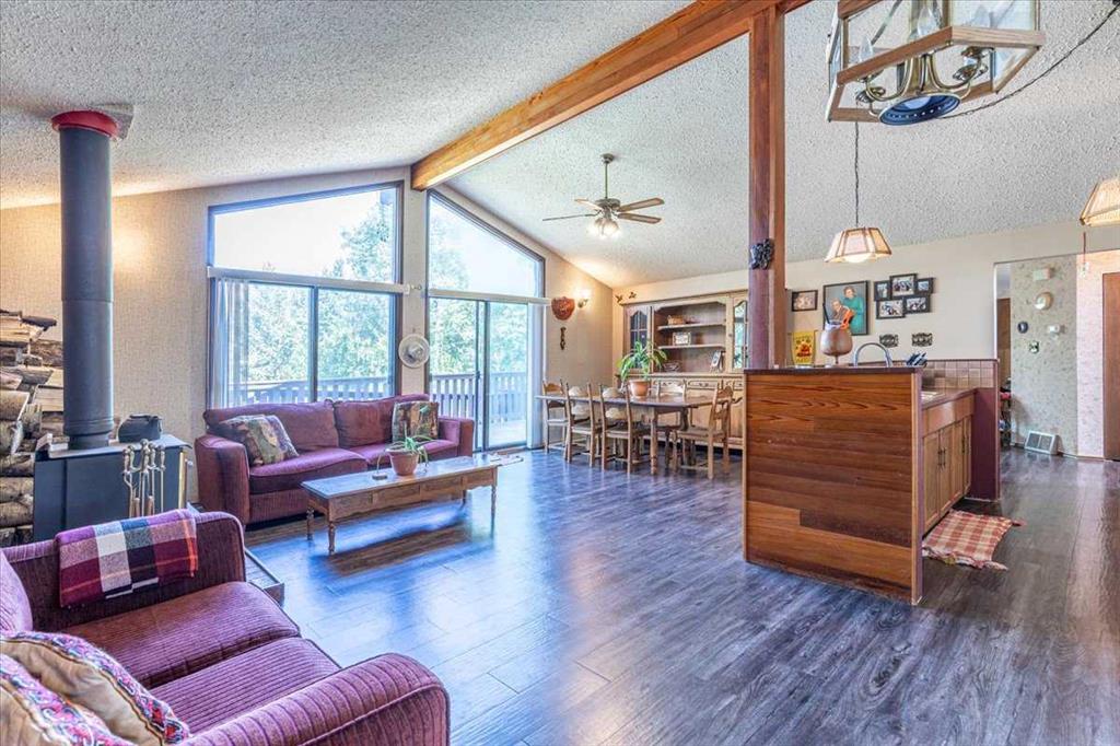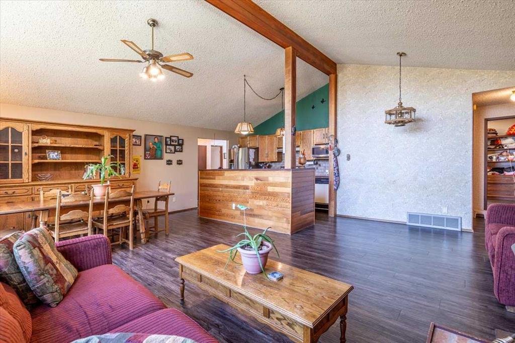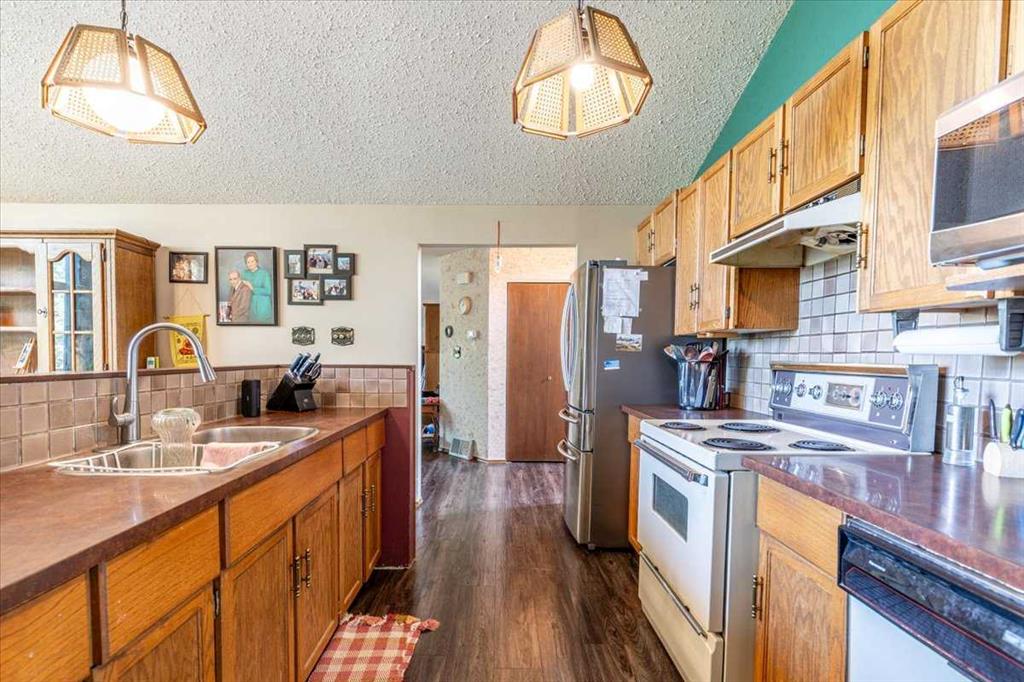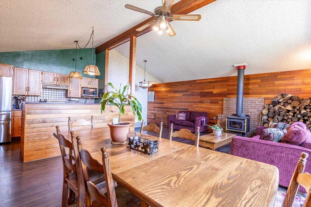 This Magnificent Property with Lakefront Access and Views holds a 2250 sq/ft Home with a Double Attached Garage, Quadruple Detached Garage, and More! Inside the home the Main Level is made up of Two Bedrooms, Living room with a wood fire place on a stone wall, Kitchen that is open to the Dining room with a vaulted ceiling, and Family room with another fireplace. A Walk-In Pantry, Laundry/Utility Room, and a 4 Piece Bathroom Conclude the Main floor. The Upper Level has the Primary Bedroom that has its own 4 Piece Ensuite Bathroom, Walk-In Closet, and an Office. This Home is Wheelchair accessible from the Attached Garage with a lift and from the large back deck that over looks the lake through the patio doors into the Living room and Family room. The Detached Garage measures 36\'x28\' has a Concrete floor, Heat, Power, and Two Overhead Doors. This Property Welcomes you to enjoy the lake year round with extra storage for toys of every season!