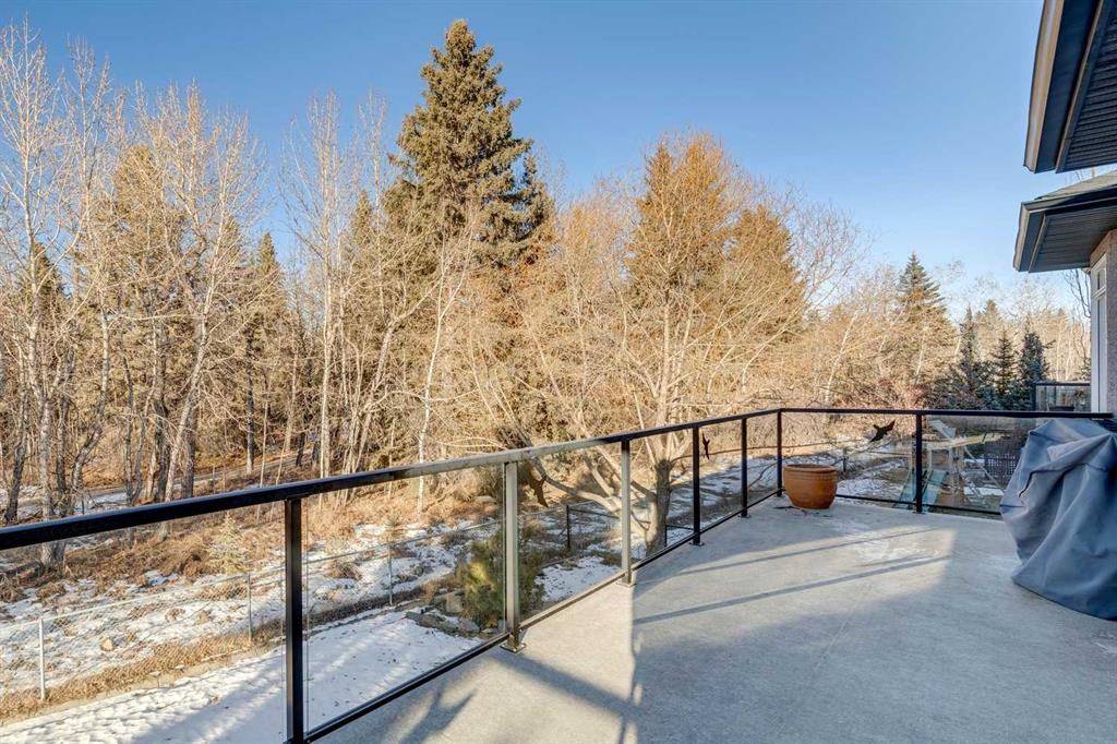 Offered for the first time by the original owner, this immaculate home shows true pride of ownership throughout! Ideally located backing directly onto Fish Creek Park, the property enjoys a large pie-shaped lot in a peaceful natural setting with mature trees and immediate access to some of Calgary’s best walking and cycling pathways right outside your door. The main level features an open and inviting layout with 9 foot ceilings, beautiful hardwood floors, and oversized windows which fill the space with natural light and offer tranquil views of the park. The open plan layout features a spacious living room with a cozy gas fireplace, adjoining breakfast nook with doors onto a spacious deck, and well-appointed kitchen with granite countertops, a raised island with space for stools, ample cabinetry, a corner pantry, and premium stainless appliances. A formal dining room with a tray ceiling provides an elegant space for entertaining. The primary bedroom is generously sized and offers views of the park, and features a generous ensuite bathroom and walk-in closet. Rounding out the main floor are a second bedroom, a sunlit den with south facing windows, a full main bathroom, and a convenient laundry and mudroom. The walkout lower level extends the living space with a large family room, wet bar, pool table area, two additional bedrooms, a full bathroom, and abundant storage. The walkout patio looks onto the treed green space beyond, further enhancing the connection to the park. The extra wide garage is ideal for storage or a workshop in addition to parking for two vehicles. Additional updates include a new roof shingles in September 2025, a new hot water tank in 2024, and central air conditioning in 2022. Close to parks, schools, shopping, and more. This is a rare opportunity to own a beautifully cared for home in an unbeatable Fish Creek Park setting, offering privacy and beautiful surroundings. Call your favorite Realtor to schedule a private viewing!