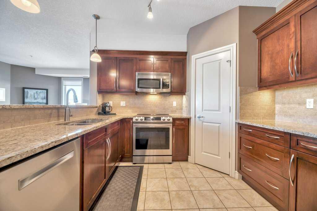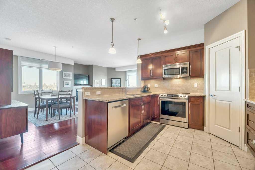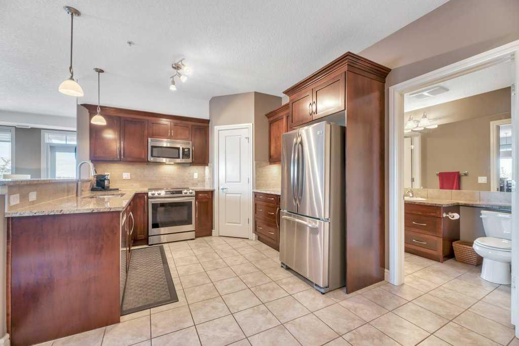 Welcome to #2334 a rare end-unit at Sanderson Ridge, offering breathtaking 180-degree panoramic views of Fish Creek Park, the city skyline, and Marshall Springs. Proudly recognized as one of Calgary’s premier condominium communities, this award-winning complex is perfectly nestled along the edge of Fish Creek Park, providing direct access to miles of scenic walking, hiking, and cycling paths — a true nature lover’s retreat. This immaculate end unit features soaring 9-foot ceilings and a thoughtfully designed open-concept layout. The spacious foyer welcomes you into the gourmet kitchen, complete with granite countertops, stainless steel appliances, and an induction stove. The expansive living and dining areas are warmed by a cozy gas fireplace and seamlessly open to a generous private balcony — the perfect spot to enjoy your morning coffee or evening barbecues while taking in the spectacular views. The primary suite is a serene retreat, featuring a spacious walk-in closet and a 4-piece ensuite with double sinks and stunning vistas. A well-sized second bedroom also enjoys incredible views of Fish Creek Park. A dedicated office area adds convenience for work or hobbies, while in-suite laundry with washer and dryer completes the functional layout. Enjoy year-round comfort with central air conditioning, and the peace of mind of condo fees that include all utilities. This unit comes with two titled, adjacent heated underground parking stalls and secure storage lockers. Sanderson Ridge is renowned for its exceptional, resort-style amenities, including a swimming pool, hot tub, steam room, fitness centre, bowling alley, movie theatre, woodworking shop, craft room, wine cellar, billiards room, and two car wash bays. Flooded with natural light throughout the year, this home offers comfort, luxury, and an unparalleled lifestyle. Welcome home to Sanderson Ridge — Calgary’s premier 40+ adult community.