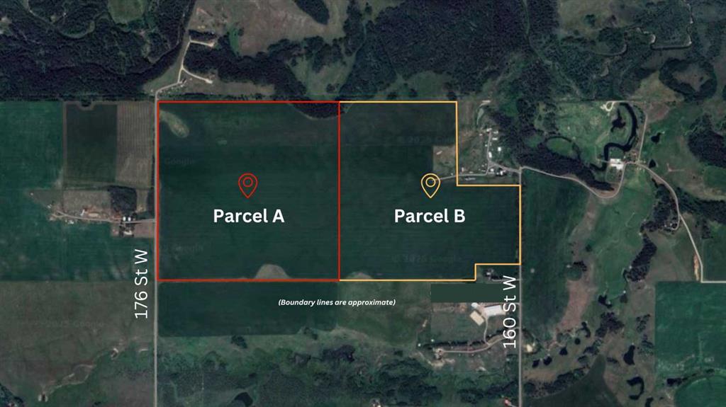 WELCOME to a UNIQUE opportunity (LESS THAN A MILE FROM CALGARY CITY LIMITS!!!) to own 127.28 ACRES of PRIME Land just off 160 Street W (Straight NORTH of HIGHWAY 22X), brimming with POTENTIAL for development!!! Parcel B in the cover photo is the parcel listed here. Whether you\'re looking to develop, conserve, or diversify, this SUBSTANTIAL TRACT offers REMARKABLE FLEXIBILITY to bring your VISION to life!!! Diverse terrain for future zoning, utility setups, or land use adjustments. Ideal for Agriculture, Recreation, or long-term APPRECIATION; this Land can adapt to your needs while remaining a VALUABLE ASSET. Just a short drive WEST of CALGARY, this property contains SERENE NATURAL BEAUTY w/CONVENIENCE of nearby city access, making it an EXCEPTIONAL opportunity for those seeking a VERSATILE development potential in a DESIRABLE location. EASY ACCESSIBLE via PAVED roads leading directly to the property. There are 3 ROBUST water wells, each delivering 10 gallons per minute (GPM), ENSURING a RELIABLE water supply. The GENTLY rolling terrain with SCENIC VIEWS of the nearby MOUNTAINS adds SIGNIFICANT appeal to any future development plans. ENJOY the PANORAMIC VIEWS, creating an ideal setting for RESIDENTIAL, RETREAT SPACES, or even RECREATIONAL uses. It can be PERFECT for future subdivisions or COUNTRY ESTATE potential. With the 3 STRONG water wells in place, + PAVED road access, the land is PRIMED for various uses, whether Residential, Agricultural, or Eco-Friendly Tourism. This is an unparalleled combination of SOUGHT-AFTER Mountain Views, Proximity to Calgary, + Robust water access, making it a RARE GEM for anyone looking to own a SIGNIFICANT piece of ALBERTA\'S PRIME land. The Parcel adjacent to this one is also for sale by the same owner. Don\'t miss out on the chance to SHAPE this land into your DREAM!!!