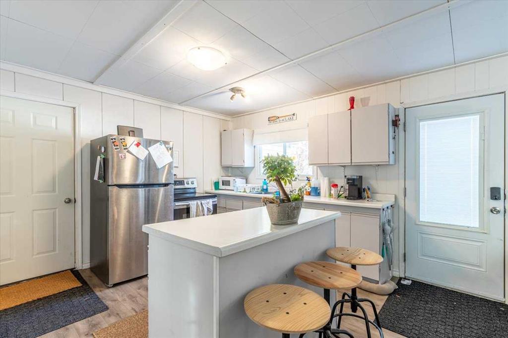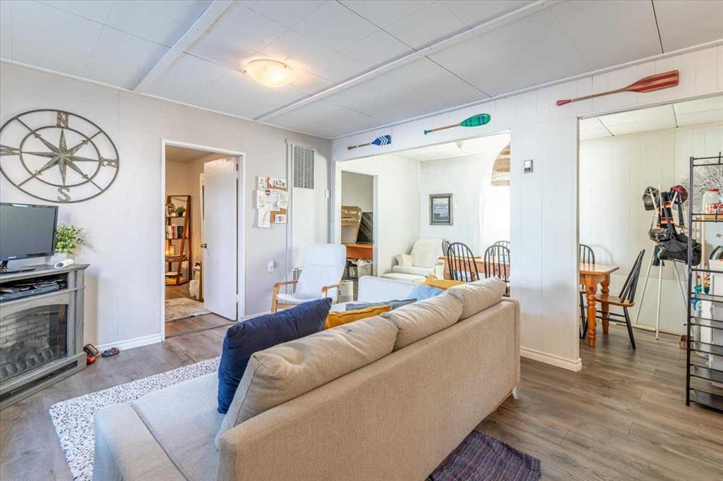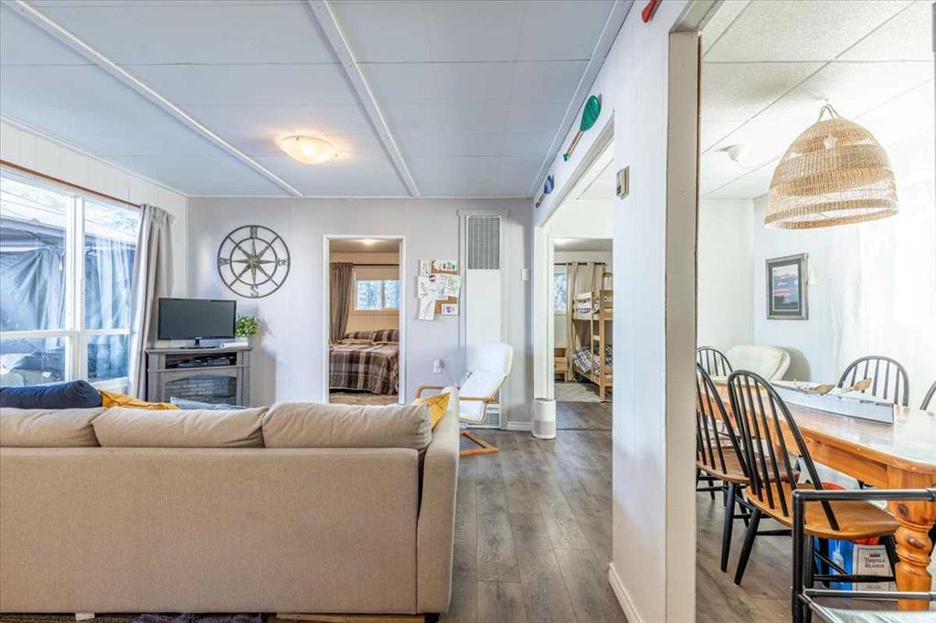 This 4 season Lake Front Property is renovated with new appliances, flooring, paint, and bathroom! Inside, the functional layout includes a Kitchen with an island that is open to the Dining area and Living room. Two bedrooms and a 3 piece bathroom with laundry complete the interior floor plan. A Large deck with a Gazebo provide a beautiful view of the beach and lake. A 24\'x10\' Single Garage with power, overhead door, and wood floor is perfect for storing all your lake toys! This property is ready for its new owners to start enjoying life at the lake year round!