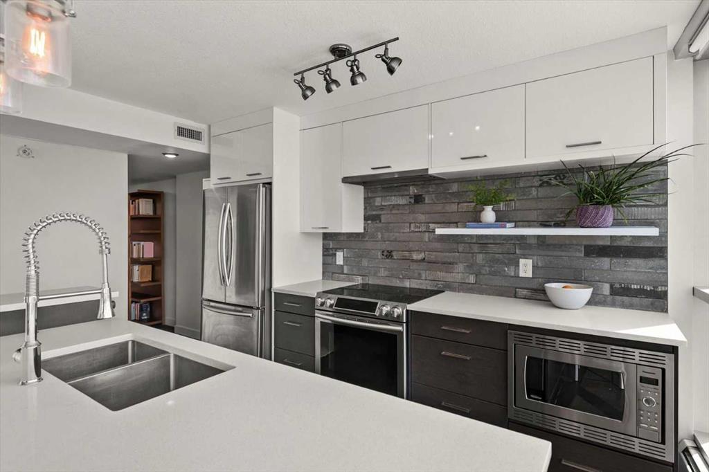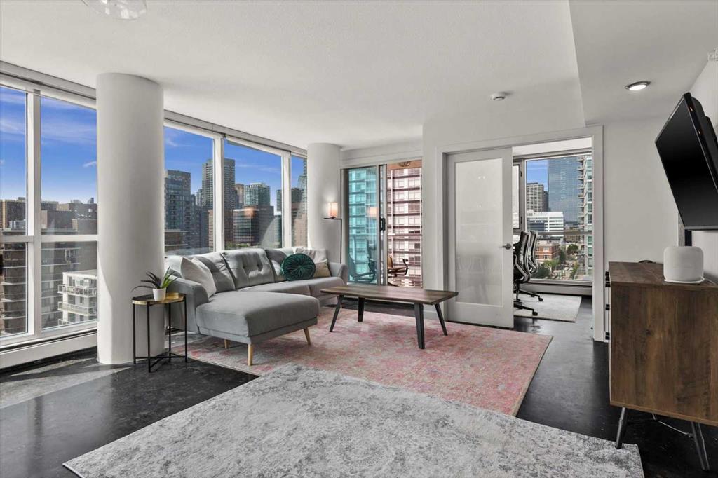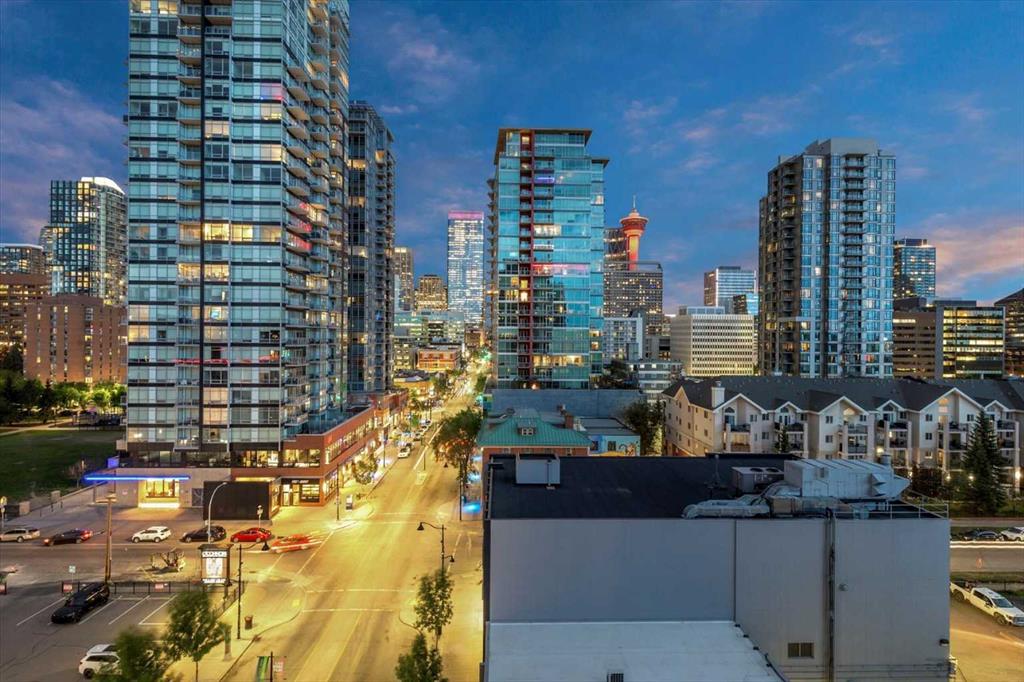 *CHECK OUT 360 VIRTUAL TOUR* West-Facing, Corner Unit with Modern Upgrades & Central A/C! Soak in the incredibledowntown views from this sleek 2 bedroom condo, where floor-to-ceiling windows bring the city skyline right into your living room. Located in TheChocolate building in the heart of The Beltline, enjoy the ultimate urban lifestyle just off 1st Street and 17th Ave, offering incredible restaurants,cocktail bars, and coffee shops, all while just a short distance from the Calgary Saddledome and Stampede Park. Designed for both comfort and style,the open-concept layout features polished concrete floors and a fully upgraded kitchen complete with quartz countertops, sleek stainless steelappliances, bright cabinetry, and a large island offering plenty of space to host and entertain. The main living area is the perfect spot to relax andenjoy the city views with floor-to-ceiling windows throughout. Wake up each morning to breathtaking views of the iconic Calgary Tower, perfectlyframed from your NW facing patio, the ideal spot to enjoy your morning coffee, or enjoy evening BBQs. The second bedroom offers versatile space,perfect for a comfortable home office or guest room. The updated 4-piece bathroom features a sleek modern vanity and ample storage. Additionalfeatures include in-suite laundry, a titled underground parking stall, complimentary bike storage, and a common courtyard patio for you to enjoyduring the summer months. Whether you\'re a first-time buyer, urban professional, or investor, this condo delivers exceptional value and anunbeatable location!