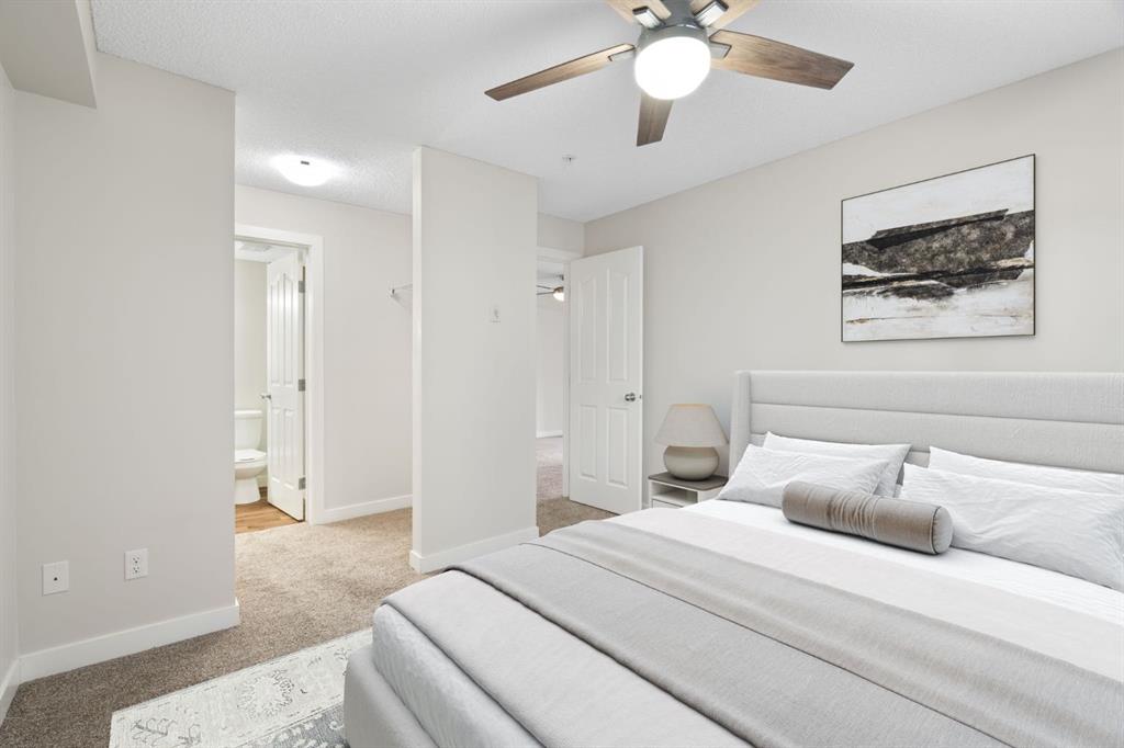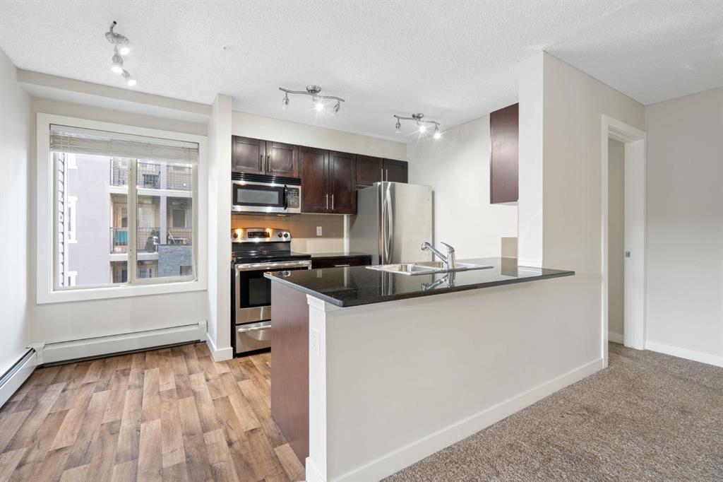 Welcome home to this perfectly situated, bright and sunny, east facing, two bedroom, two bathroom, corner unit on the quiet side of the complex! This one also has a secure, heated, titled underground parking stall! You won\'t want to miss this one... the foyer (big enough to have in suite storage and/or a home office space) welcomes you home at the end of the day. Step through into this large, open, living space with treed, peaceful, east facing views. The kitchen, with breakfast bar, is the perfect spot for prepping dinner with friends, or hanging out with loved ones on a lazy Sunday morning. There\'s room for a dining table too, if you\'re wanting something a bit more formal. The layout is amazing, with the two bedrooms on either side of the floorplan. The generous primary bedroom has a walkthrough closet and 3pc ensuite. There\'s a second full bathroom and bedroom, as well. The huge, covered balcony is perfect for BBQ season, or for a lounge in the sun, whenever summer returns. Park in your titled, underground spot and walk to all this area has to offer. You\'re steps from the shops, restaurants, and coffee bars, a few more steps from green spaces and the neighbourhood parks! This one has been lovingly cared for and shows like new! Call your favourite realtor to schedule your showing today!