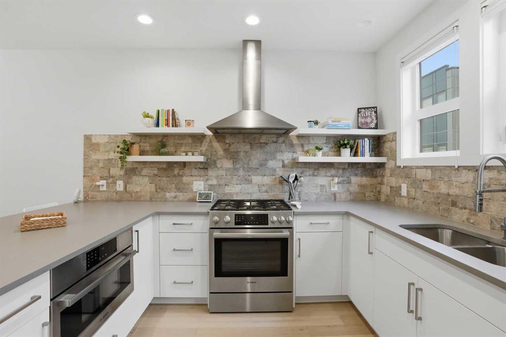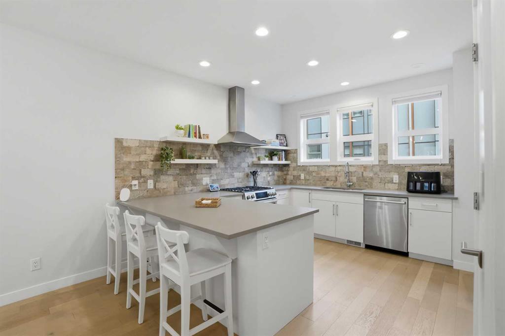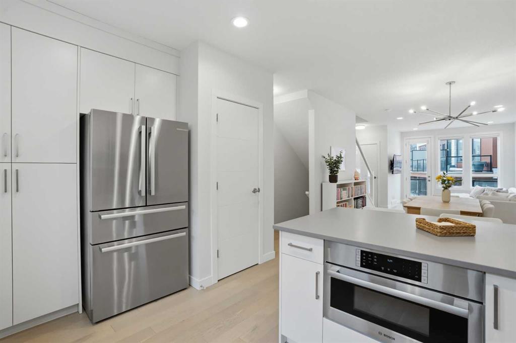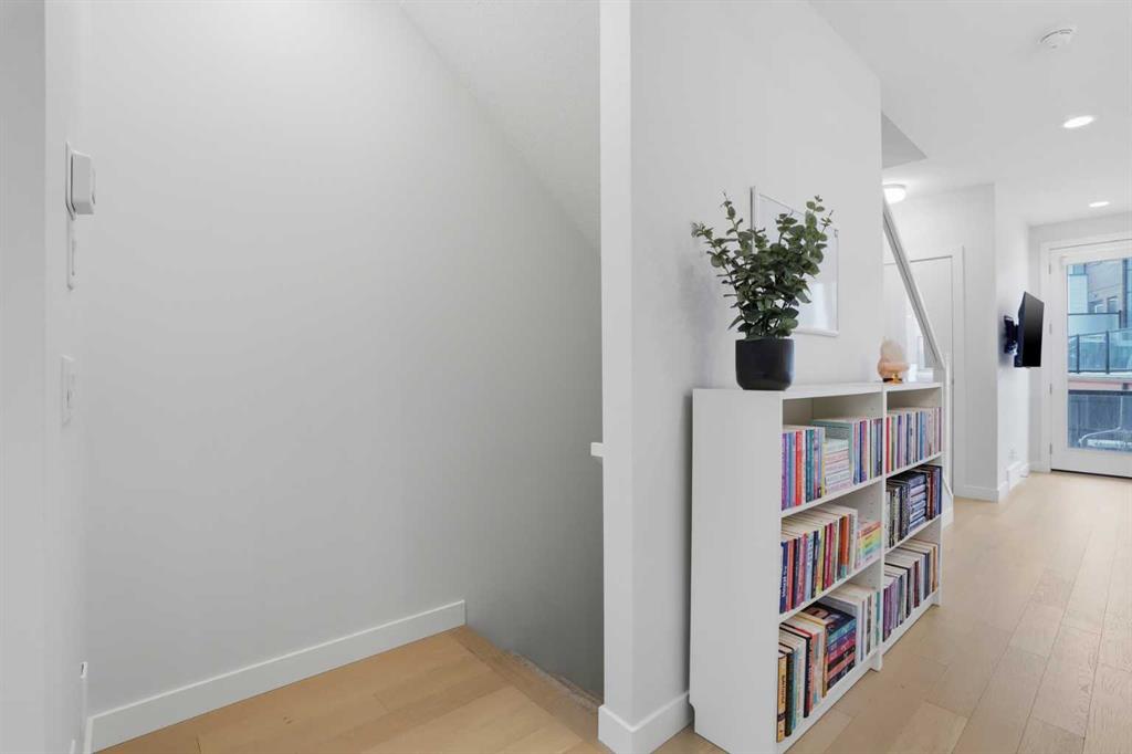 Discover this exceptional south-facing townhouse located in the heart of the University District, in Varsity one of NW Calgary\'s most desirable communities. Boasting upgraded contemporary finishes and engineered hardwood flooring throughout the main and upper levels. This home offers both style and comfort. Enjoy picturesque views of the expansive courtyard, complete with green space, a community garden, and a playground—perfect for relaxation and recreation. The inviting main entry features a sun-drenched south-facing patio, while the open-concept main floor is flooded with natural light from large windows and a private South facing balcony. Custom blinds add a touch of elegance throughout. The sleek, modern kitchen is ideal for entertaining, featuring ample cabinetry, stunning quartz countertops, and upscale stone back splash , stainless-steel appliances (including a gas range), a walk-in , pantry, and a built-in pantry for extra storage. Upstairs, you’ll find two spacious bedrooms, each with its own ensuite bathroom. The second bedroom includes a built-in queen Murphy bed, maximizing space and versatility. A separate laundry room completes the upper level. With so many premium upgrades, this home is equipped with air conditioning, Hunter Douglas window coverings, epoxy garage flooring, central vacuum, and enhanced hardwood flooring. The secure, double attached tandem garage offers generous storage, epoxy floors, and a wall of built-in cabinets. Step outside your front door to find the University campus, Foothills and Children’s Hospitals, as well as the Market Mall with a vibrant selection of shops, cafes, restaurants, pubs, boutiques, grocery stores, and a movie theatre—all just moments away. This property shows like new and presents a rare opportunity to live in one of Calgary’s most dynamic and sought-after neighborhoods. Don’t miss your chance to call the University District home!