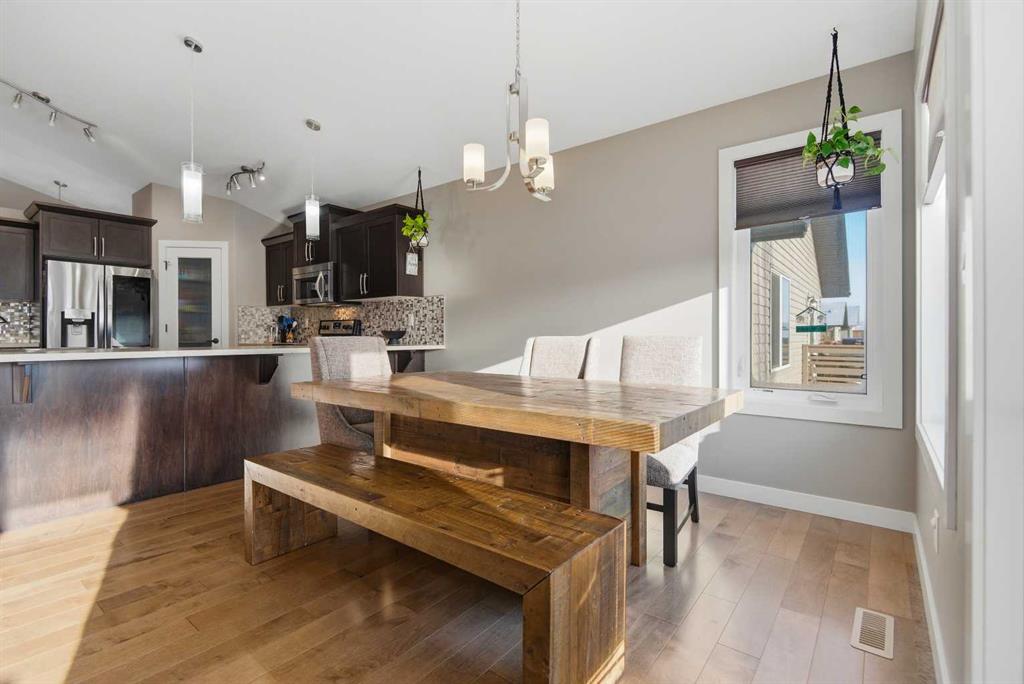 Classic family home, quiet close, bright backyard (with its own playground), short safe walk to elementary school and not far from local shops and restaurants....all ingredients for the perfect place to reside, raise a family and plan your future! This Blackfalds bilevel has a giant primary suite over the garage with a 4 piece ensuite and generous walk in closet. Main level has double vaulted ceiling, massive kitchen with upscale stainless appliances, family sized eating area with access to the deck for BBQs and entertainment. Two good sized bedrooms on main and well as two more in basement with 2 more 4 piece baths offers lots of space and options for a growing family. Heated attached garage currently houses a \"dream machine\" and personal use equipment but could be your \"hobby spot\" or just a garage. Vinyl fenced south backyard with irrigation system completes a well presented and great value home...