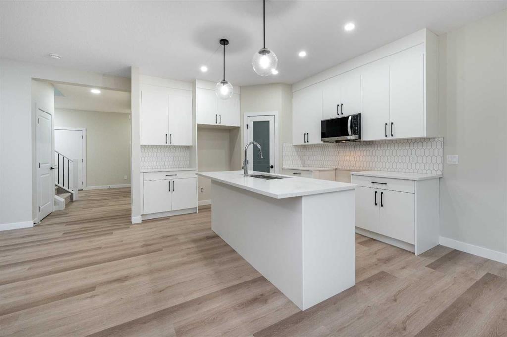 ***QUICK POSSESSION*** FRONT DOUBLE GARAGE, WIDER CORNER LOT, 3 Bedrooms + Bonus Room + Den | 2.5 Baths | The most popular Moana model on over 34.5 feet wide lot, situated in the community of Waterford, minutes from the Chestermere lake. Experience the epitome of open concept living, featuring upgrades such as 9 feet Ceilings on main floor and basement, metal spindles on railing, 3cm quartz countertops, LVP flooring, under mount sinks, convenient upstairs laundry and so much more! Great room includes an electric fireplace with feature wall which adds style and warmth perfect for chilly nights. The kitchen is completed with a huge island, perfect for gathering families and friends, soft close cabinets and drawers throughout, spacious pantry plus large counter space, new appliance package including GAS range, built-in microwave, french-door refrigerator and dishwasher. The dining room is spacious enough to host a big family. Upstairs, indulge in the comfort of your perfectly sized central bonus room, ideal for the quality family time together. Retreat to the spacious master suite with a 5-piece ensuite and walk-in closet for a relaxing escape. The two secondary bedrooms, both with walk-in-closets, a 3-piece bath with another standing shower and conveniently located laundry room complete the second level. The basement is unfinished but comes with 9 feet ceiling, separate side entrance and a mechanical room moved to a corner for ease of future development. Proximity to the CALGARY, schools, diverse retail and culinary delights are just some of the highlights. Call to book your showing now !!!!!!!