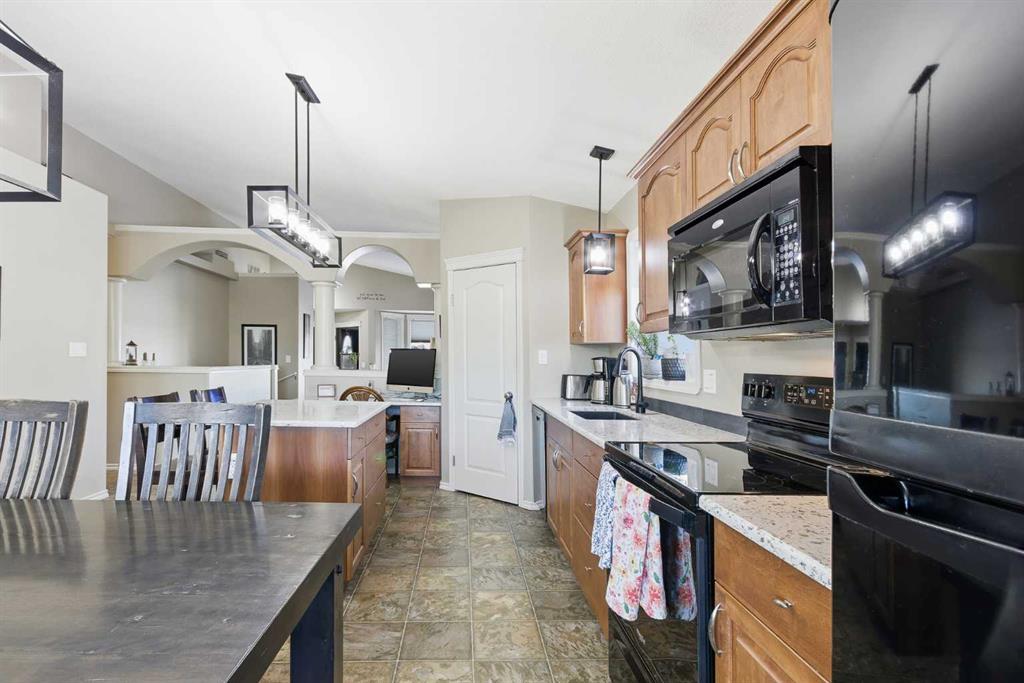 The main floor features three bedrooms, including a spacious primary suite with a walk-in closet and 3-piece ensuite. The large kitchen is ideal for both everyday living and entertaining, showcasing quartz countertops, a corner pantry, and an abundance of alder cabinetry. Central air conditioning ensures year-round comfort.