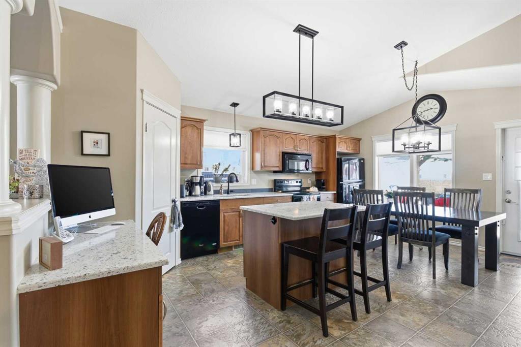 Outside, you’ll find a well-manicured, fully fenced and landscaped yard designed for enjoyment and functionality. The covered deck/pergola features added glass, power, and natural gas hookup for your BBQ, making it perfect for entertaining. RV parking, a shed, and a hot tub (included) add even more value.