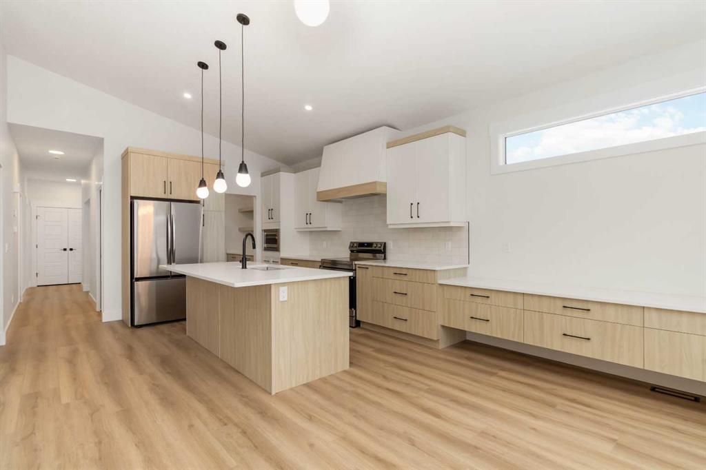 120 Beaconview Place- Sitting on a 9,625sqft pie shaped lot; This Absolutely Gorgeous New Construction Home is sure to impress- Built by Prestigious Alves Developments situated in a quite Cul-de-sac is ready for its new home owner. Your home offers excellent parking with the extended concrete driveway leading to the attached TRIPLE CAR GARAGE with IN-FLOOR HEAT. Inside your home you will find a large foyer heading into your open concept floor plan Featuring an abundance of natural lighting and vaulted ceilings. Your living room is oversized with large windows, Luxury vinyl plank flooring and open to a kitchen only dreams are made of. Your kitchen offers lots of countertop and countertop space. Finishings are beyond luxurious; quartz countertops and a massive pantry with built in shelving; The oversized island area allows extra entertaining room; extra storage looking into your large dining space. The dinette area gives direct access to your back deck with low maintenance railings and your massive back yard with full ALLEY ACCESS. Your main floor is also equipped with a large primary bedroom, absolutely stunning, five piece, en suite and oversized walking closet with built-in shelving plus you have main floor Den/2nd bedroom if needed. The basement is fully developed, and boasts in-floor heating featuring larger windows, and high ceilings, the floor plan could not be better. Giving you a massive recreation/gaming room, two oversize bedrooms and a full four piece bathroom, as well as added storage with linen space. This home is an absolute stunner. Includes all Appliances, Central A/C and front Landscaping. Call today for your private viewing.