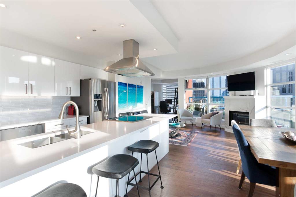 Welcome to your dream downtown retreat, just steps from the Bow River. This fully renovated sub-penthouse offers near 1,400 square feet of beautifully designed living space, featuring 2 bedrooms and 2 bathrooms, all tucked into one of Calgary’s most vibrant and walkable communities.
