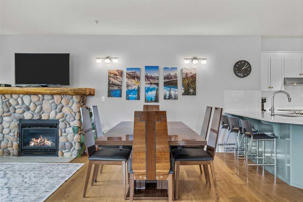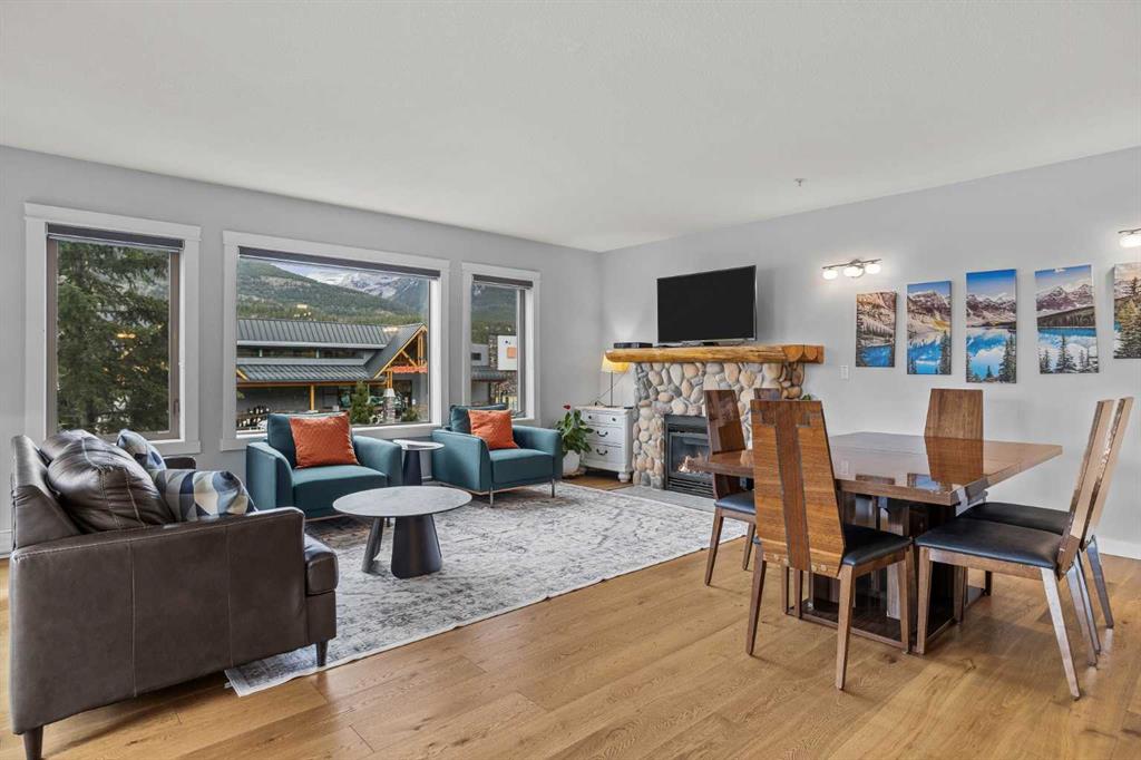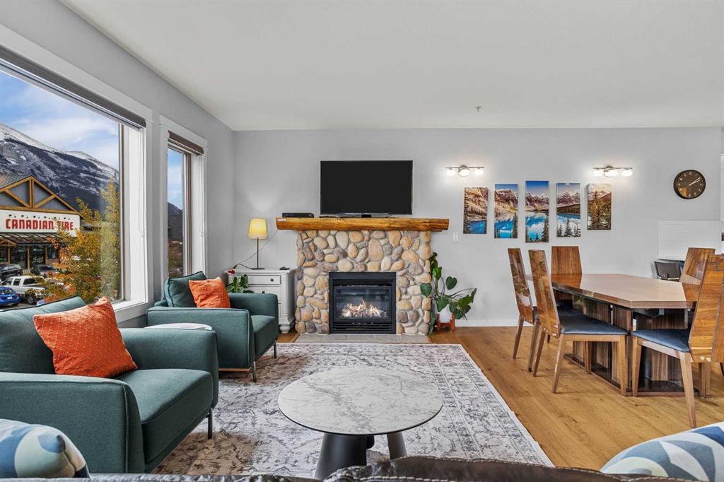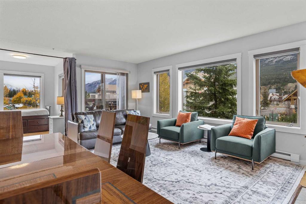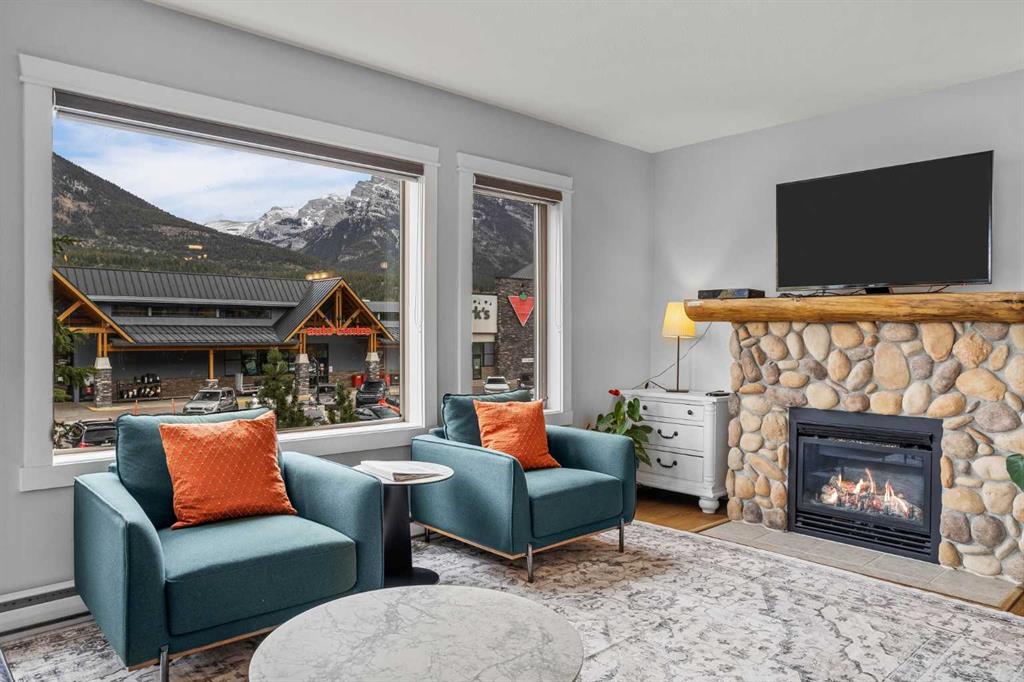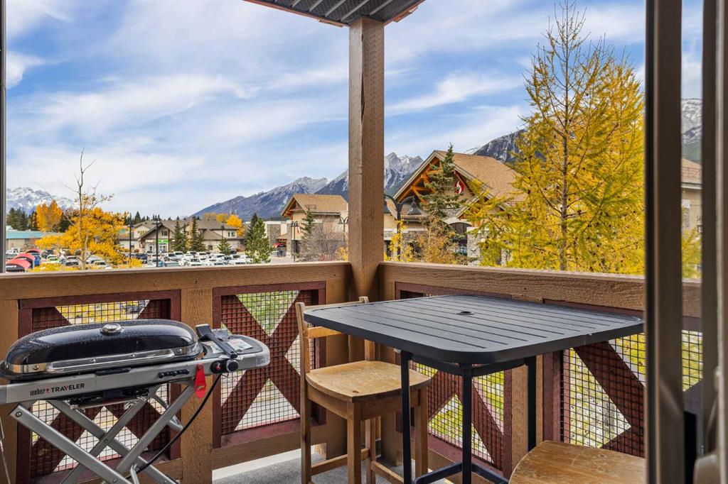 Wrap-around mountain views, rooftop hot tub, and legal tourist zoning — a rare combination. This bright corner unit offers 1,200 square feet and the flexibility to operate as a high-performing short-term rental or a full-time or lock-and-leave Canmore home. Thoughtfully renovated and fully furnished, this property is truly turnkey and positioned perfectly for the busy summer season. Currently configured as a two-bedroom plus den, the layout comfortably sleeps six and can easily function like a three-bedroom with the addition of a pull-out sofa — a simple way to expand nightly rates and overall revenue. Granite countertops, 2 tone cabinetry, durable vinyl flooring, and modern finishes deliver a clean, updated aesthetic that performs well with guests. Located in one of Canmore’s most sought-after STR buildings, this downtown address puts shops, restaurants, and trails right at your doorstep, with downtown just a block away. Owners and guests enjoy premium amenities, including a top-floor fitness room, underground parking and a stunning rooftop hot tub with 360-degree mountain views — a true differentiator in the short-term rental market. Whether you’re focused on cash flow, flexibility, or long-term value in one of the world\'s strongest STR markets, this property delivers. *List price is inclusive of GST -ask your tax expert how to defer the tax*