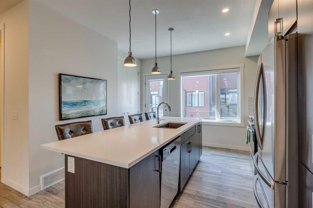 Welcome to 614 Greenbriar Common NW – a quality-built Calla model townhouse by Landmark Homes, located in the vibrant master-planned community of Greenwich. Built in 2020, this 4-bedroom, 3.5-bath home offers over 1,500 sq. ft. of thoughtfully designed living space across three levels. The entry-level features a private fourth bedroom with its own ensuite—ideal for guests, a home office, or multi-generational living. Just off the attached two-car garage, a convenient mudroom/entry makes daily life easy and organized. Upstairs on the main (second) floor, you\'ll find a bright, spacious open-concept layout combining the kitchen, living, and dining areas—perfect for both relaxing and entertaining. The modern kitchen includes a large island with seating for four, quartz countertops, and 9’ ceilings, which continue throughout the home. A powder room and separate laundry room on the main level add to the functionality of the space. Abundant natural light flows in through large windows and glass doors that lead to balconies on both the front and north-facing sides. Enjoy expansive, unobstructed views over the river valley toward northwest Calgary. The top level includes three generously sized bedrooms, including a primary suite with a walk-in closet and ensuite featuring a large shower. A four-piece main bath serves the other two bedrooms. This townhouse is tucked away at the back of the community, offering peace and quiet, yet remains close to everything. Just steps away is Canada Olympic Park for skiing and recreation, and nearby you\'ll find shopping, restaurants, and coffee shops. The new Calgary Farmers’ Market West, boutique retail, and dining options are all within walking distance. Commuters will appreciate quick access to 16th Ave NW/Hwy 1, providing a straight route downtown to the east or westward to the Rocky Mountains, Banff, and Canmore. Proximity to Foothills Hospital, Children’s Hospital, and the University of Calgary adds even more convenience. Other highlights include walking distance from the off leash dog area, energy-efficient heating, air conditioning, and triple-pane windows for year-round comfort. The home is in excellent condition and still covered by some of the AB home warranty program. Ideal for families or investors seeking a four-bedroom layout with attached garage parking. Don’t miss your chance to own this well-located home in a growing, lifestyle-rich community. Book your showing today!