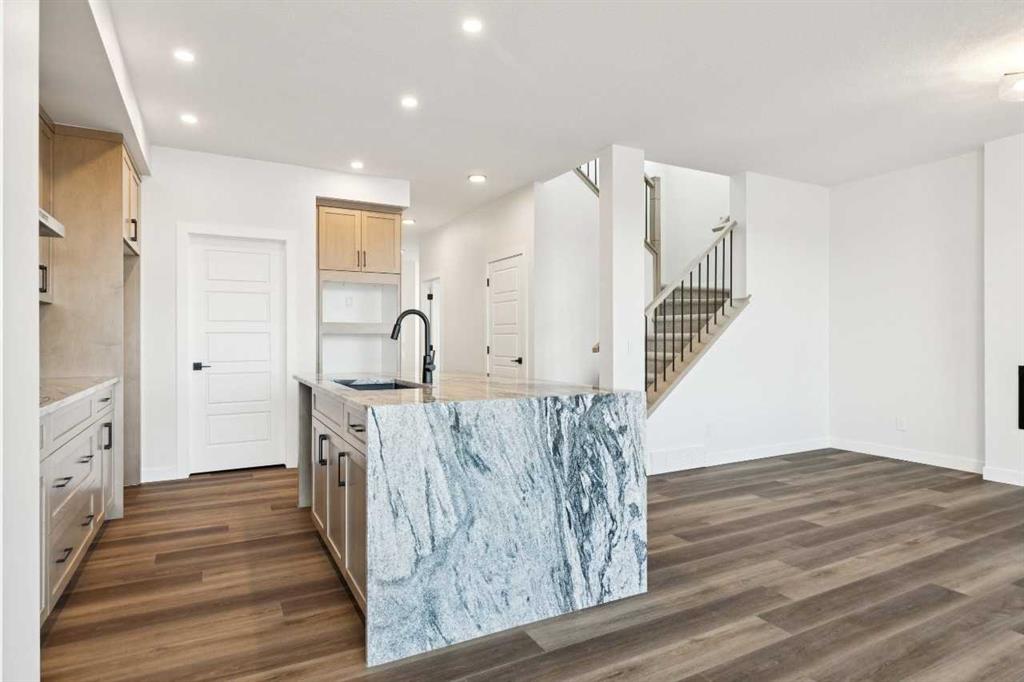 Built by Sterling Homes, this home showcases on-trend, designer-curated interior selections tailored for a home that feels personalized to you. Energy efficient and smart home features, plus moving concierge services included in each home. Featuring LVP flooring throughout, this bright and spacious home offers an electric fireplace in the great room, maple railing with iron spindles, and additional natural light from additional windows and a skylight in the vaulted bonus room. The executive kitchen showcases built-in stainless steel appliances, a gas cooktop, waterfall island edge, walk-in pantry. The main floor includes a bedroom and full bath with a tiled wall fiberglass base shower, while the primary bedroom offers a 5-piece ensuite including a tiled wall shower with a fiberglass base and a bank of drawers. With a side entrance, 9\' basement ceilings, and a 2-bedroom basement roughed-in, this home delivers comfort, style, and future potential. This energy-efficient home is Built Green certified and includes triple-pane windows, a high-efficiency furnace, and a solar chase for a solar-ready setup. With blower door testing that may be eligible for up to 25% mortgage insurance savings, plus an electric car charger rough-in, it’s designed for sustainable, future-forward living. Featuring smart home technology, this home includes a programmable thermostat, ring camera doorbell, smart front door lock, smart and motion-activated switches—all seamlessly controlled via an Amazon Alexa touchscreen hub. Some photos used are representative.