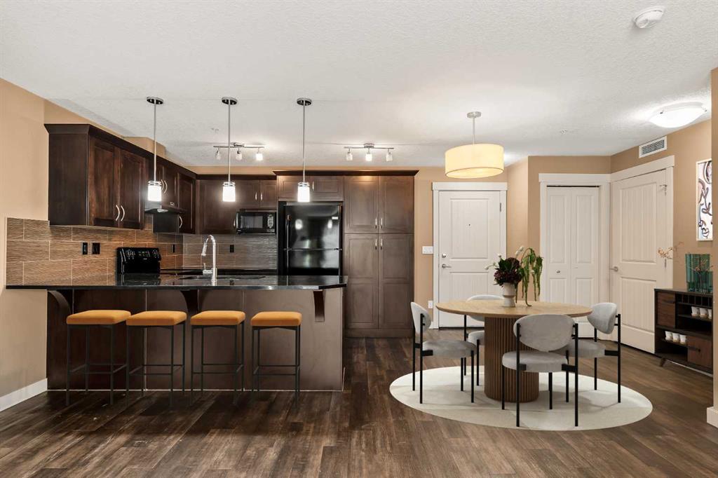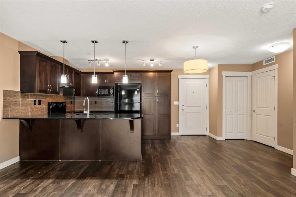 Welcome to Sage Hill, where comfort and convenience come together in this beautifully upgraded 2-bedroom, 2-bathroom low-rise condo. The kitchen is a true standout with rich cabinetry, a large island with seating, and plenty of space for everyday living and entertaining. The open layout includes a dedicated dining area and a bright, spacious living room that’s easy to furnish. Luxury vinyl plank flooring runs through the main living areas for a modern, seamless look, while both bedrooms feature soft carpet for added comfort. West-facing windows fill the home with natural light, and the private balcony with a gas hookup is the perfect spot to enjoy summer evenings. The primary bedroom includes a walk-through closet and a 4-piece ensuite with double sinks and great storage. The second bedroom is bright and versatile, located next to a second full bathroom with a tub/shower combo. You’ll also love the in-suite laundry with extra shelving, air conditioning via the wall unit in the living room, a titled underground parking stall and a secure underground storage locker for seasonal items. Sage Hill is a fantastic NW community with walking paths, green space, nearby shopping, restaurants, and quick access to Stoney Trail and Shaganappi Trail. Perfect for first-time buyers, downsizers, or investors—this home checks all the boxes!