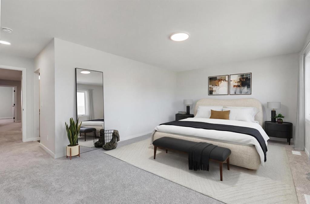 THE SAGE by Baywest Homes offers over 2,300 sq. ft. of well-designed living space above grade with 3 bedrooms, 2.5 bathrooms, a bonus room, and a main-floor office. Situated on a spacious lot with an east-facing backyard, this home blends style, comfort, and functionality with an estimated possession of February 2026. The open-concept main floor features a bright great room with a cozy fireplace and oversized windows, flowing into a chef-inspired kitchen with 42” cabinets, quartz countertops, upgraded appliances, gas range, chimney hood fan, and a walk-through pantry connecting to the mudroom. Sliding patio doors lead to the east-facing backyard. Upstairs includes a generous bonus room with adjacent tech space, a primary retreat with walk-in closet and ensuite featuring a separate soaker tub and shower, two additional bedrooms, a full bathroom, and a dedicated laundry room. Additional features include triple-pane windows, 9’ basement ceilings, modern railing, and a double attached garage. Built by Baywest Homes, known for quality craftsmanship since 1985, and backed by a 10-Year Alberta New Home Warranty plus one-year builder warranty. About the Community: Sawgrass Park in NW Airdrie is a vibrant new community by Hopewell, featuring lush green spaces, serene wetlands, and upcoming plans for a new school and recreation amenities such as a splash park and pickleball courts. It’s the perfect place to build lasting memories—and you’ll be among the first to call this exciting neighbourhood home. There is no showhome in this area so please contact the listing agent to arrange a showing.
