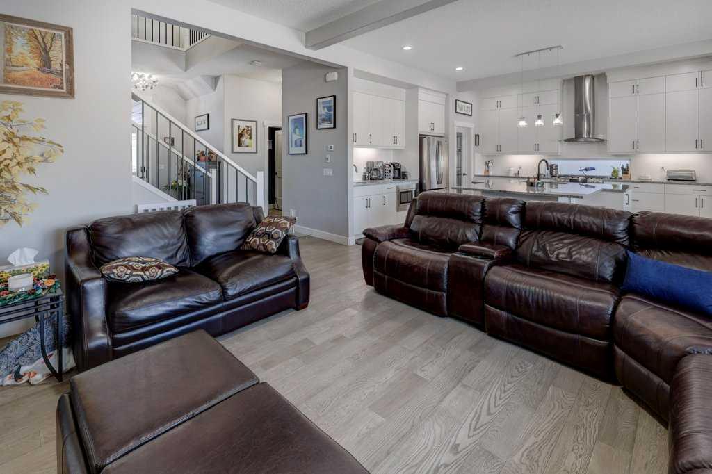 This exceptional 5-bedroom home offers over 3,700 sq. ft. of beautifully developed luxury living space, thoughtfully upgraded throughout and situated on the second-largest lot on the street backing onto Greenspace, creating an impressive presence and enhanced functionality. Built by McKee Homes with the upgraded Signature Design package, this residence combines timeless finishes with modern comfort. The main floor features 10’ ceilings, rich oak hardwood flooring, knock-down ceilings, and elegant rounded wall corners, creating a refined yet welcoming atmosphere. Triple-pane vinyl windows enhance energy efficiency and year-round comfort. The chef-inspired kitchen is both stylish and highly functional, showcasing higher-end granite countertops, black granite sinks, and floor-to-ceiling maple cabinetry with soft-close hinges. A Gigantic Island seats 6 people comfortably and is amazing for entertaining quests. Thoughtful storage upgrades include extra-deep pot and pan drawers, garbage and recycling pull-outs, extended island cabinetry for cookie sheets and cutting boards, tip-out trays, a second prep sink, and under-cabinet lighting. Premium appliances include a Gas range with double oven, Bosch dishwasher, and a GE Profile refrigerator with internal water dispenser. A matching granite wet bar in the fully developed basement continues the home’s upscale design. All bathrooms feature granite countertops, upgraded faucets and accessories, comfort-height energy-efficient toilets with slow-close lids, and tip-out trays. The main (kids’) bathroom includes a double vanity, while the primary ensuite offers a relaxing jetted tub. The builder-developed basement seamlessly matches the rest of the home and includes a wet bar, plush carpeting with Smart Cushion underlay and pet-protection layer, and generous living and entertaining space. Comfort and efficiency are paramount with two furnaces (separate systems for main/upper levels and basement), a heat recovery ventilation system, and a large air-conditioning unit serving the main and upper floors. Insulation has been upgraded to R22 on exterior walls, R20 in the garage, and R34 in the attic. The extended oversized garage includes a heater, while the home is wired for a hot tub. An exterior shed is built into the home with matching siding, a concrete slab, and electrical—meeting HOA requirements while offering exceptional storage. The beautifully manicured backyard is designed for outdoor living, featuring a large deck, hand-laid stone patio, outdoor fireplace, and privacy fencing ideal for a future hot tub (hot tub not included). Underground Sprinklers provide seasonal convenience watering your lawn! Power roller blinds on the rear of the home and wood shutters at the front complete the window treatments. With its extended width design, additional office space, premium finishes, and standout lot size, this home delivers luxury, efficiency, and everyday practicality in a truly impressive package.