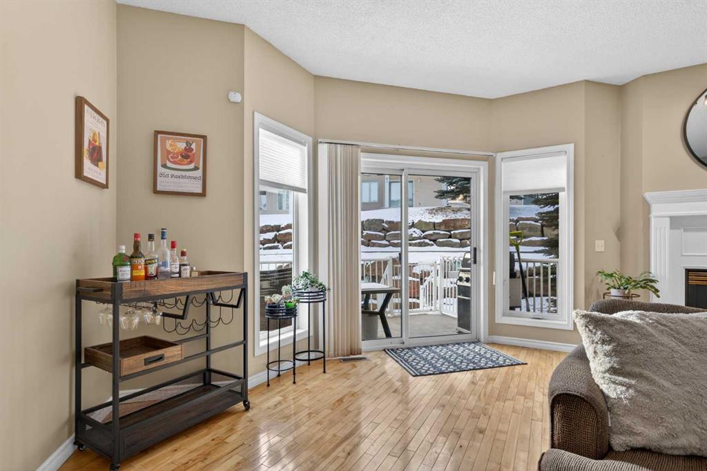Here in the estate community of Hamptons is this beautifully updated condo in Calbridge’s highly sought-after townhome project of LaVITA…ready & waiting just for you! Backing onto a winding greenbelt & walking path, this stylish end unit enjoys gleaming hardwood floors, 3 bedrooms & 2.5 bathrooms, sleek kitchen with stainless steel appliances & tandem-style 2 car garage. With over 1600sqft of developed living space, this wonderful two storey end unit boasts an open concept living/dining room with gas fireplace…drenched in natural light, with access onto the backyard deck. The sunny eat-in kitchen has a walk-in pantry & centre island, granite countertops & the newer stainless steel appliances include a Samsung stove with induction cooktop. Upstairs there are 3 lovely bedrooms & 2 full bathrooms…highlighted by the bright & spacious primary bedroom with 2 closets, bay window with views of the greenbelt & ensuite with shower. Main floor laundry with Kenmore washer & dryer, plus an adjoining powder room. Plenty of parking in the 2 car garage & front driveway. Among the many additional improvements include baseboards & carpets, repainted trim & railings, lighting & backsplash. Prime location in the complex conveniently located next to visitor parking. Monthly maintenance fees include grass cutting & snow removal…so you can throw away your shovel & lawn mower! Bus stops are within walking distance, & neighbourhood shopping & the golf course clubhouse are just minutes away. Hamptons is a premier golf course community in Calgary’s desirable Northwest, ideally located within easy reach of recreational facilities & major retail centers, highly-rated schools & the University of Calgary, hospitals & the LRT. Move-in ready & in tip-top condition…welcome to your new home!