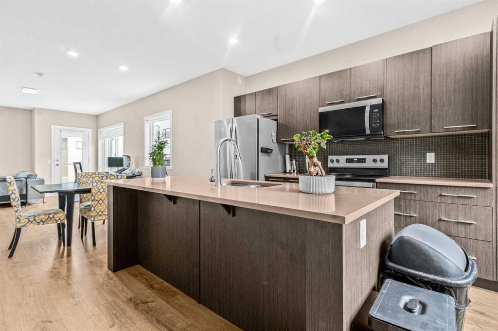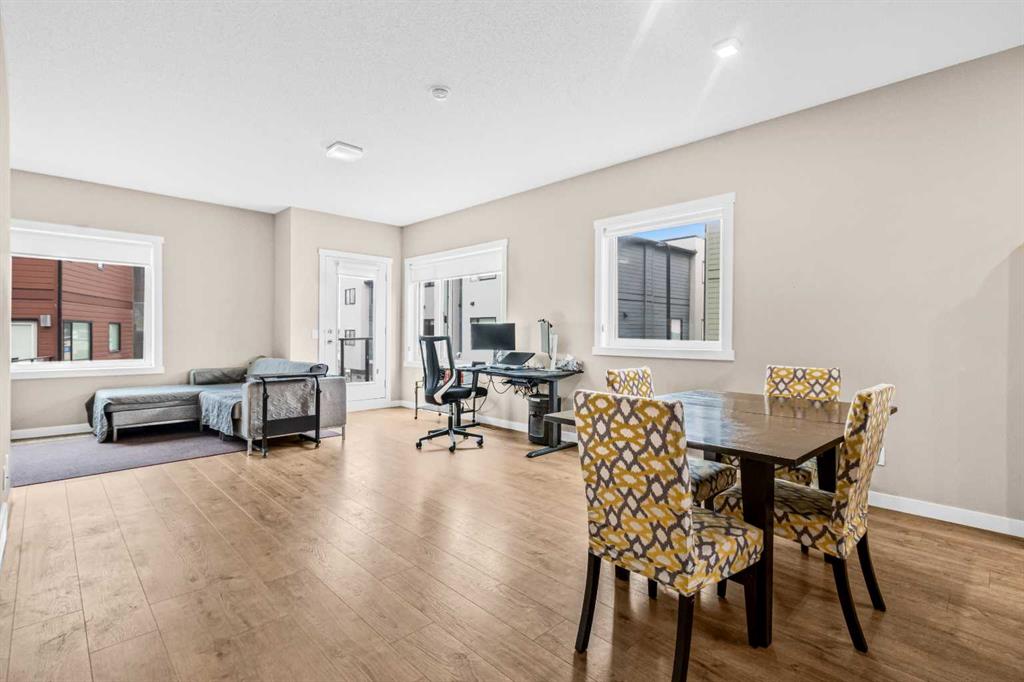 As you step inside, you’re welcomed by a functional mudroom with direct access to the garage and a SUN FILLED DEN surrounded by large windows, ideal for a home office or flex space. The main living level showcases HIGH CEILINGS and OVERSIZED WINDOWS that fill the home with natural light. The OPEN CONCEPT layout is perfect for entertaining, with a formal dining area flowing into the spacious living room and modern kitchen featuring STAINLESS STEEL APPLIANCES, ample cabinetry, and generous counter space. This level is complete with a 2 piece bathroom, stacked laundry, and a LARGE PRIVATE BALCONY perfect for relaxing on warm days.