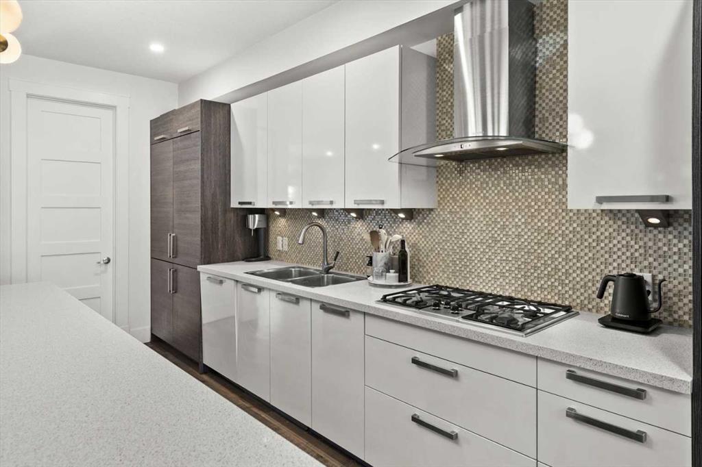 Enjoy luxurious modern inner city living in the heart of friendly Killarney. Offering an incredible 3379 sqft of living space with 5 bedrooms and 3.5 bathrooms, high ceilings, generous spaces, and an exceptional setting across from a large green space and a highly regarded school. The main floor features a stylish living room with a chic Montego fireplace, an open dining area ideal for large gatherings, and a sleek kitchen equipped with European cabinets, a large quartz island with seating, gas cooktop, built in refrigerator, and walk in pantry. A spacious family room opens to a sizeable deck perfect for outdoor dining and relaxation, overlooking a private backyard, while a rear mud room and detached two car garage with alley access add everyday ease. Upstairs, the primary suite is a true retreat with vaulted ceilings, a private balcony, and a shared fireplace connecting the bedroom to a luxurious ensuite with multi-head rain shower, dual sinks, a deep soaker tub, and enclosed toilet. There are two more sunny bedrooms, a family washroom and a laundry room with wash sink on the upper level. The lower level offers a versatile recreation room well suited for a home gym, playroom, media space, or games area, along with two additional bedrooms, storage and a full bathroom. Located in a vibrant, family friendly neighbourhood with an active community centre, excellent schools, nearby shops and services, and convenient access to major roadways, this home delivers modern comfort and an outstanding lifestyle.