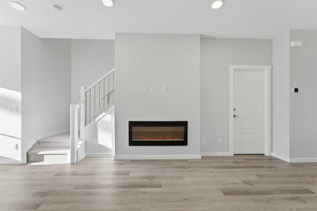 The main floor features a bright, open-concept layout ideal for both daily living and entertaining, highlighted by a versatile main floor bedroom or home office—perfect for remote work or multi-generational living. The contemporary kitchen showcases upgraded cabinetry with cabinets to the ceiling, upgraded tile finishes, and a stylish flow into the spacious living and dining areas, enhanced by added potlights and a cozy fireplace that adds warmth and character.