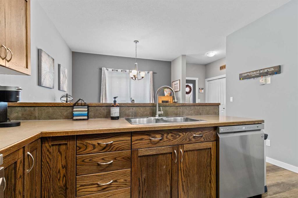 From the moment you enter the open foyer, you are greeted by a flood of natural light streaming through the living room’s oversized picture window. The heart of the home is undoubtedly the chef-inspired kitchen. Featuring rich stained cabinetry, a striking full-tile backsplash, gleaming stainless steel appliances, and a raised eating bar, it serves as the perfect backdrop for your culinary creations.