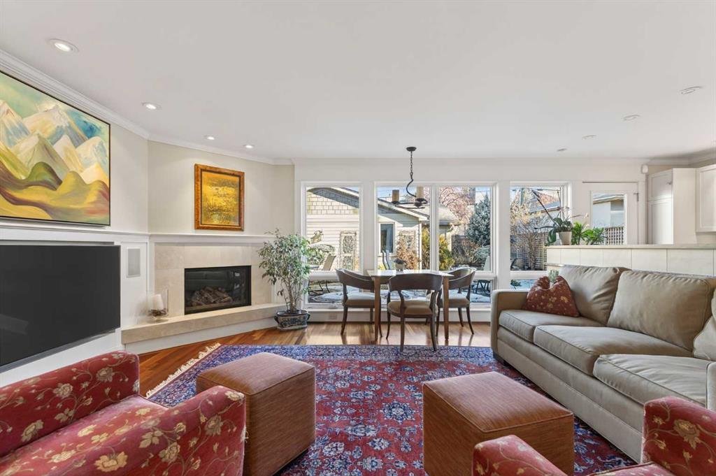 Inside, rich hardwood floors span the main level, where natural light fills the formal living and dining rooms, anchored by a beautiful fireplace that creates an inviting setting for entertaining. The spacious family room, complete with a second gas fireplace, opens seamlessly to the kitchen, featuring stainless steel appliances and functional flow for everyday living. A rare and highly desirable main floor primary retreat offers comfort and privacy, complete with its own ensuite. Upstairs, you will find two additional bedrooms with a shared bath, ideal for family or guests. The fully developed lower level expands the living space with yet another fireplace, a large games and media room, an additional bedroom or optional gym, its own ensuite, and ample storage throughout. Practicality meets charm with a mudroom that leads to a covered breezeway, connecting to the double detached garage and dedicated workshop, perfect for hobbyists or additional storage needs. Surrounded by beautifully curated hard and soft landscaping, the front and backyard spaces offer both serenity and functionality, an ideal setting for outdoor entertaining or family enjoyment. A rare opportunity to own a character home of this scale and condition in one of Calgary’s most prestigious inner city communities.