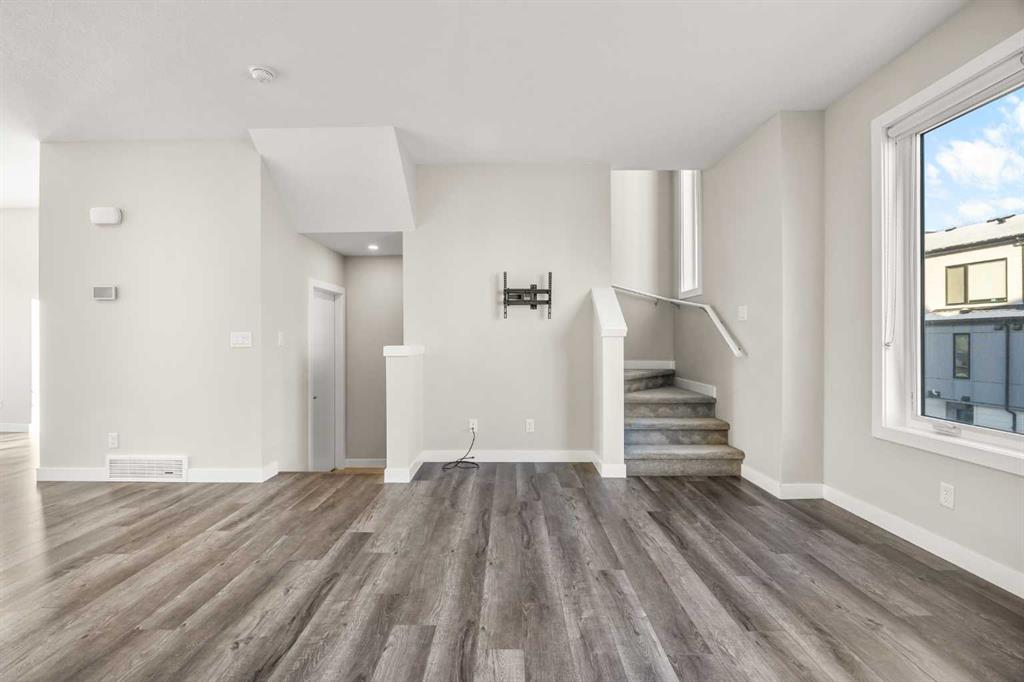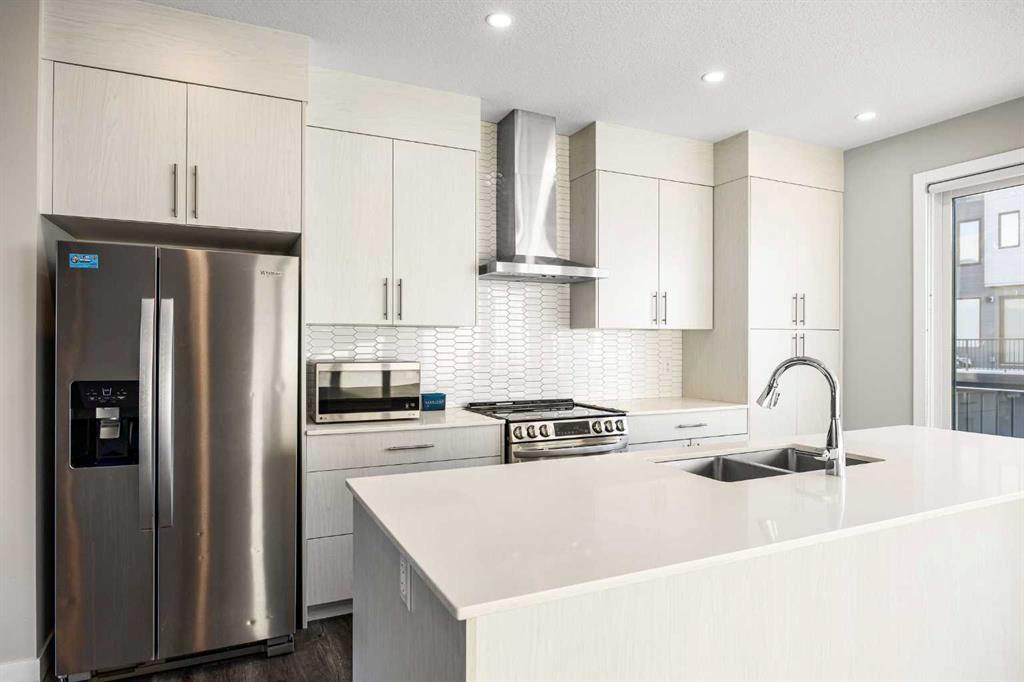 Located in the family-friendly community of Evanston, just minutes from schools, parks, shopping, and dining, this 3-Bedroom, 2.5-Bath, 1,500 sq.ft. End unit townhouse offers a perfect blend of space, function, and modern living. The main floor features a spacious open-concept layout with 9-ft ceilings, starting with a bright east-facing Living Room that fills the space with natural light. The Kitchen is highlighted by a large center island, quartz countertops, and stainless-steel appliances including a new stove, flowing seamlessly into the Dining area, which leads to the expansive balcony with gas hookup, perfect for BBQs and outdoor entertaining. A convenient 2-Piece Bath completes this level.