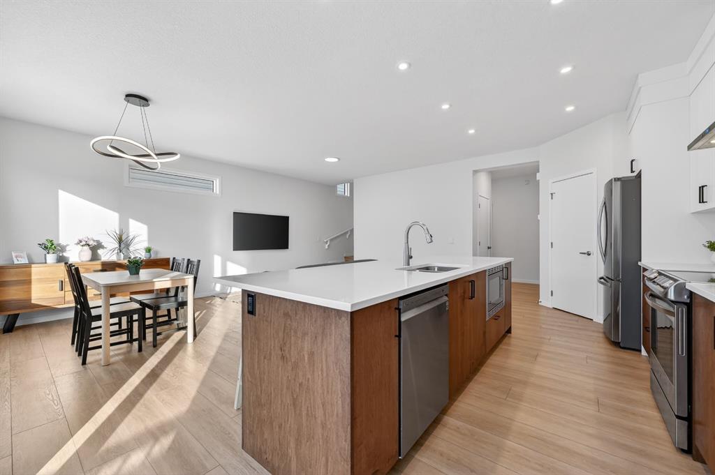 Welcome to 19 Rowley Park, located just moments away from walking paths, the river valley and the impressive Rockland Park Homeowners Association recreation facilities with outdoor heated pool and hot tub, full size and maintained hockey rink and skating paths, pickle ball courts, a pond, and more! This better than new 2-storey home offers more than 2500 SQFT of living space and is in pristine condition PLUS its located in Phase One, so no construction next door. With a welcoming front entrance, practical mudroom, and a bright and open great room with a beautiful and well-appointed kitchen, dining room, and living room, plus a main floor powder room, this is a great house for those who like to entertain in comfort and enjoy those perfect quiet family nights. The upper level offers a bonus room, large primary suite with huge ensuite and walk-in closet, two bedrooms, laundry room, and a full bathroom. The lower level has an additional family or recreation space, a flex room perfect for exercise, office, playroom or as a small bedroom, a full bath, and a large and very well-organized utility and storage room. This is an ideal home for those looking to be in this new community without having to deal with the added expense and timeline of building—already fenced and landscaped with a west facing back yard and is move-in ready with upgraded features including luxury vinyl plank flooring, triple pane windows, water softener and central AC! Quick access to Stoney Trail, schools, the mountains, and the farmer’s market. Practical and beautiful, and waiting for YOU!