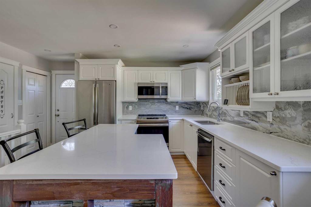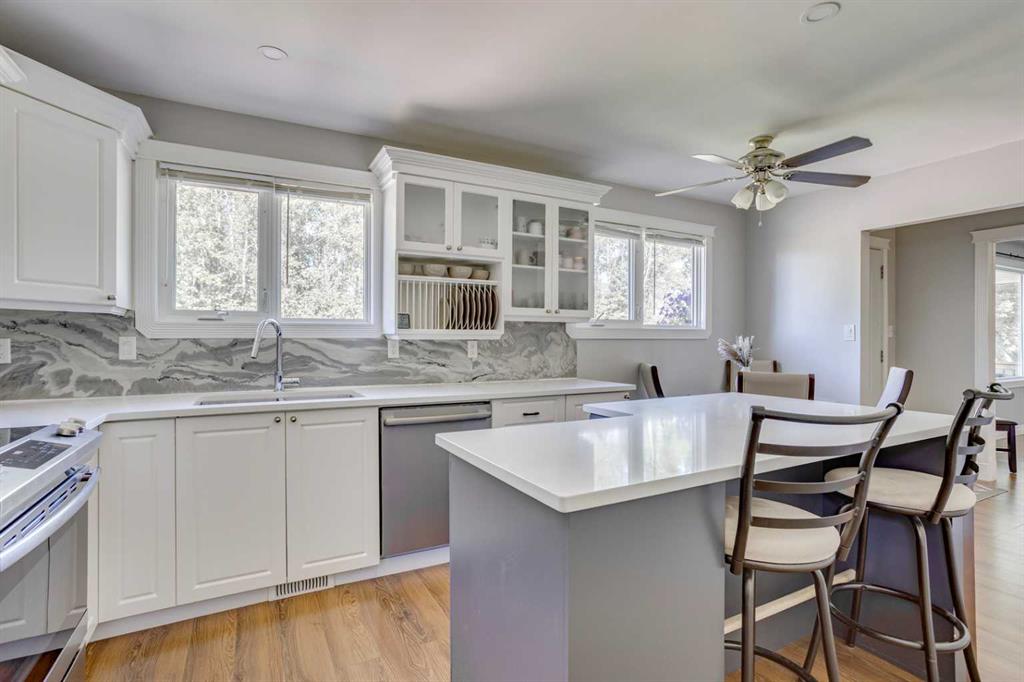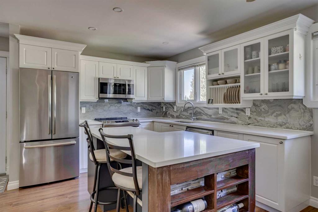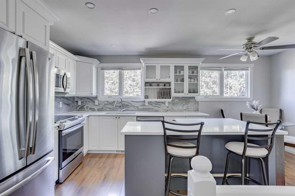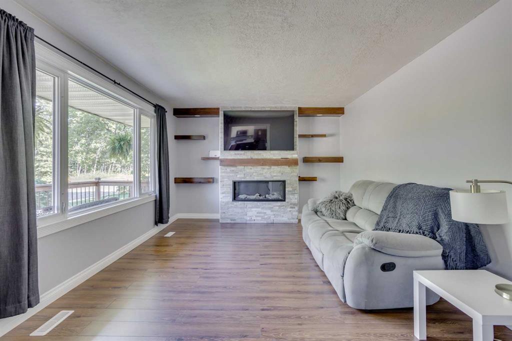 ACROSS FROM TREE LINE! RENOVATIONS COMPLETE! Welcome to pride of ownership on sought-after Hilltop Crescent—where comfort meets style in a beautifully updated home across from scenic walking trails and a peaceful tree line. Step into a spacious foyer and through charming entry into a generous sun filled living room accented nicely by a stunning fireplace feature wall. The renovated kitchen is a standout with ample counter space which includes a large isalnd, white cabinetry, and sleek stainless steel appliances. Down the hall, you’ll find three comfortable bedrooms and a fully updated 4-piece bathroom (2023) with modern finishes. The fully developed basement is a dream space, offering a large recreation area, a cozy den, a 4th bedroom, and a must-see bathroom featuring a gorgeous custom tile shower and dual sinks—perfect for guests or a growing family. The updated laundry room adds extra convenience. Enjoy your morning coffee on the front porch with tranquil views of the tree line and walking trails, or entertain in your fully fenced, landscaped backyard. Recent updates include: kitchen countertops (2025), stainless steel appliances (2019), interior paint (2021), new shingles (2024), A/C unit (2024), furnace & hot water on demand (2019), main bath countertops (2025), updated flooring throughout, washer & dryer (2019), newer front deck, fencing, and landscaping, as well as updated interior door hardware, and newer siding and windows from the previous owner. This home is located close to all amenities, including schools, grocery stores, and a dog park—everything you need just minutes away. Don’t miss out—book your private showing today!