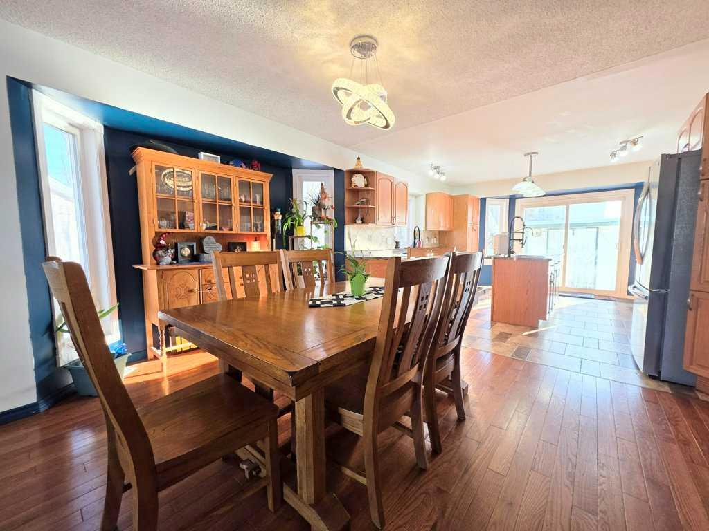 Welcome to this spacious and well-maintained home tucked away on a quiet cul-de-sac. The bright, open-concept upper level features a large kitchen with abundant storage and a thoughtfully designed layout filled with natural light. New windows and doors installed in 2023 enhance both energy efficiency and comfort throughout the home. The fully fenced, recently landscaped backyard is ideal for relaxing or entertaining, complete with apple, rose, and chum (cherry plum hybrid) trees. Downstairs, the finished basement provides a large, versatile entertainment room—great for movie nights, social gatherings, or a home fitness area. The home features larger bedrooms, an attached heated garage, and a large parking pad. Additional highlights include a newer furnace in both the house and garage (replaced within the last 5 years), Telus home security with video cameras, keyless entry, and a smart garage door opener. Ideally located within walking distance to St. Mary School, the pool, and the multi-recreation centre, this home combines space, comfort, in a great location.