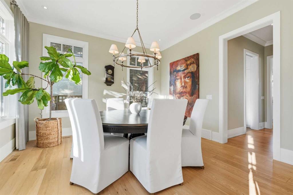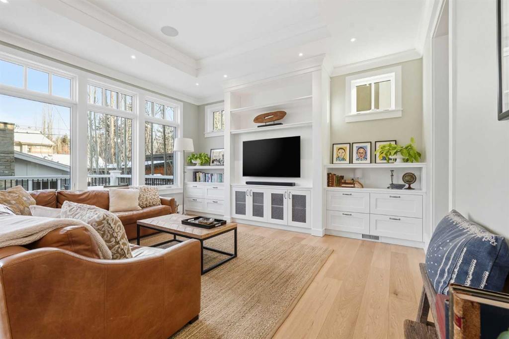 OPEN HOUSE SUNDAY, FEBRUARY 1ST FROM 12:30 - 3:30 PM. Built in 2016 by renowned Stonewater Homes and designed by McDowell & Associates, this gracious residence is situated on a 52.5’x125’ lot on one of the most vibrant streets in East Elbow Park, mere steps from the river and surrounding parks. A timeless classic, the home offers 3+2 bedrooms, 3.5 baths, and over 4400 sq ft of beautifully developed living space. The airy main level features wide plank hardwood floors, lofty ceilings, and elegant crown moulding. A formal living room anchored by a wood burning fireplace sets a welcoming tone, while the adjacent dining room provides generous space for hosting family and friends. The thoughtfully designed kitchen is finished with opal quartz countertops, a Subway tile backsplash, a large unencumbered island ideal for entertaining or baking, abundant storage, a water filtration system, vegetable sprayer, under cabinet lighting, premium appliances, and a bright breakfast nook perfect for casual meals. A well appointed butler’s pantry with wine fridge and microwave connects seamlessly to the dining room. The spacious family room with custom built ins opens to the kitchen and flows into a cozy office area—ideal for work from home days or homework sessions. A beautifully crafted 2 piece powder room and a side mudroom with bench and storage complete the main level. A traditional wide staircase leads to the second level, where you’ll find three large bedrooms, a 5 piece main bath, and a laundry room equipped with a sink, ample storage, and a hanging rack. The south facing primary retreat offers a thoughtfully designed walk in closet and a secluded 5 piece ensuite with dual sinks, a freestanding soaker tub, and an oversized shower. The fully developed basement features heated polished concrete floors, an expansive recreation/games room, two additional bedrooms, and a 3 piece bath. Additional highlights include a custom wood front door, upgraded lighting throughout, high baseboards, central air conditioning, built in speakers, and a central vacuum system. Outdoors, enjoy a charming south facing front porch with seating area and a private backyard complete with a large deck, patio, and wood burning fireplace. An irrigation system ensures easy maintenance of the beautifully landscaped yard with mature trees and perennials. Parking is effortless with a heated double detached garage. This prime location offers quick access to the scenic Elbow River pathways, Stanley Park, and Sandy Beach, while excellent schools, shopping, and public transit are all close at hand.